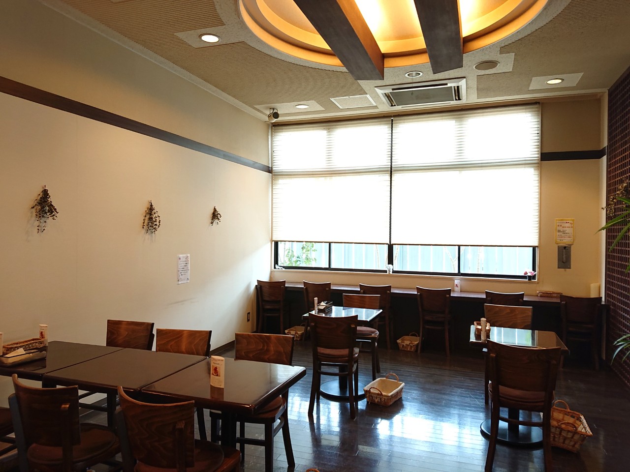 白と茶を基調にした店内✧*。