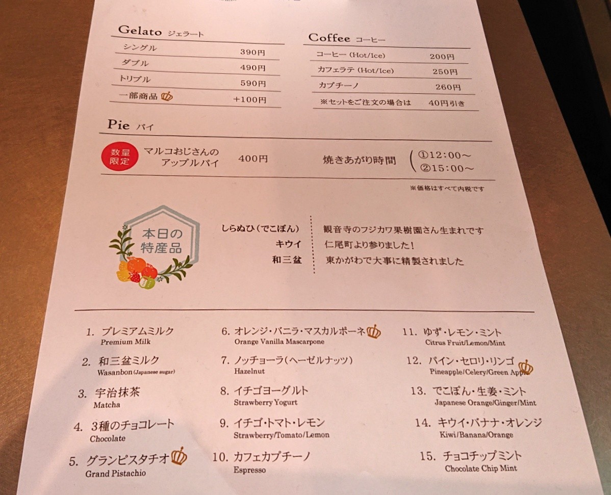 ジェラート以外のメニューもあり♬