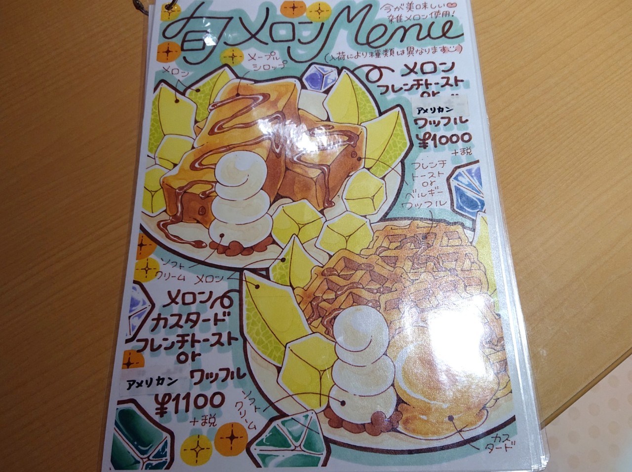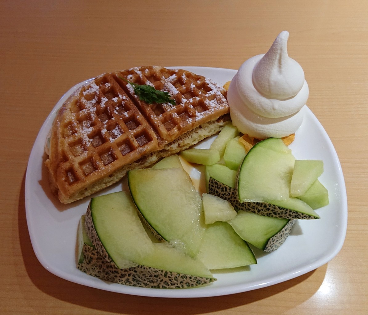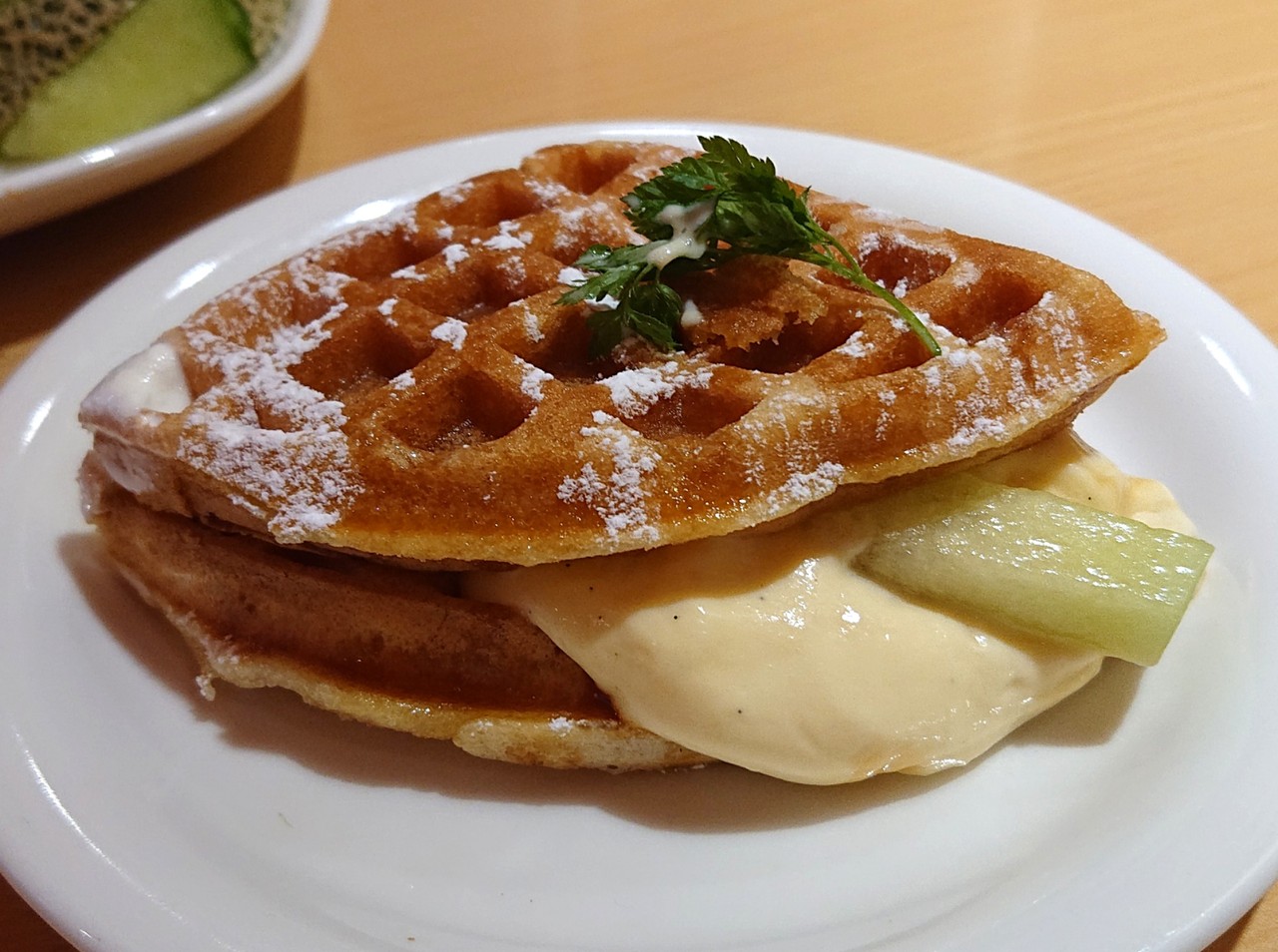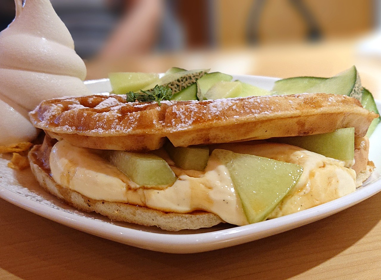 ワッフルの間にメロンとカスタードがギュッ!と詰まってて美味しい