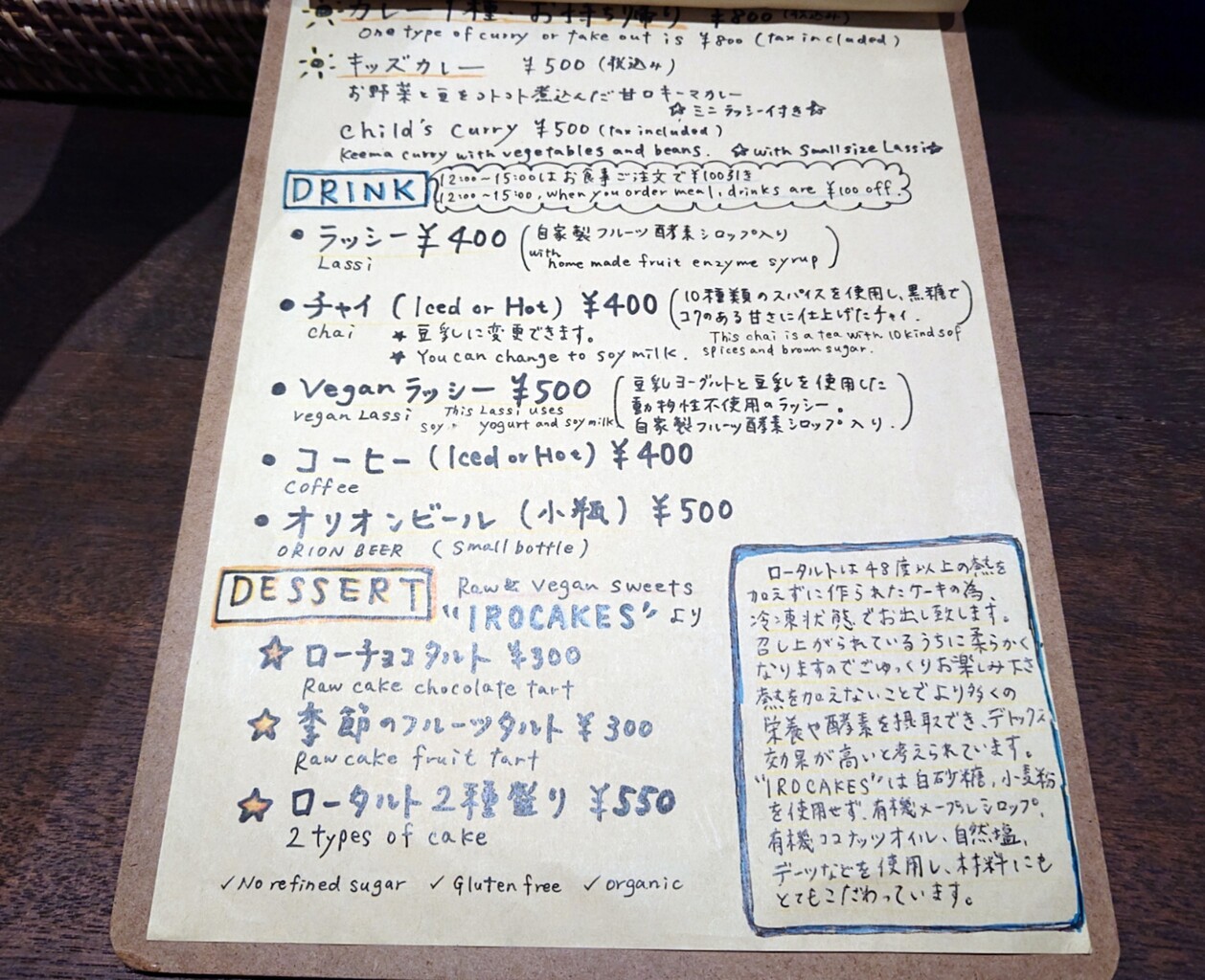黄色い方は野菜と豆を煮込んでいて甘口。