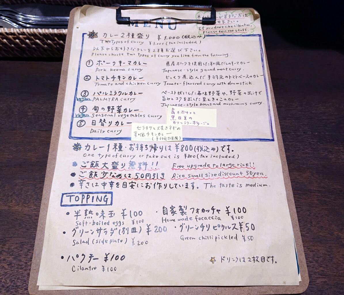 トマトチキンカレー&パルミラクルカレー