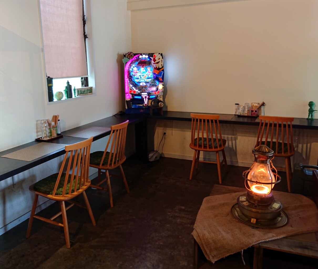 落ち着くカウンター席✧*。ガンダムパチンコ台あるけどw
