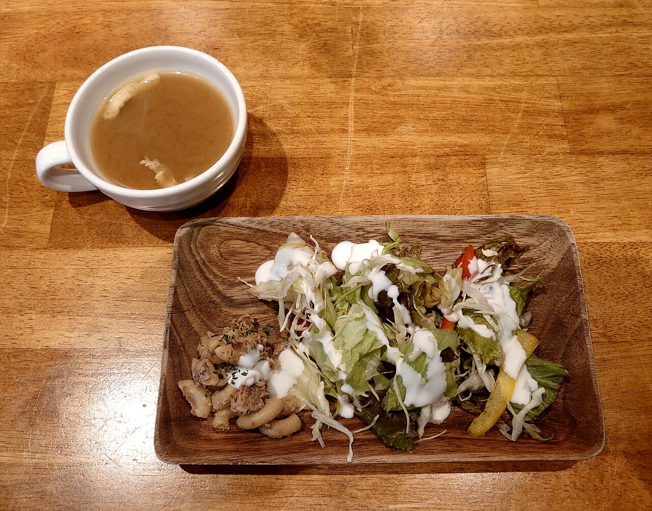 ランチには、サラダと味噌汁付き♪