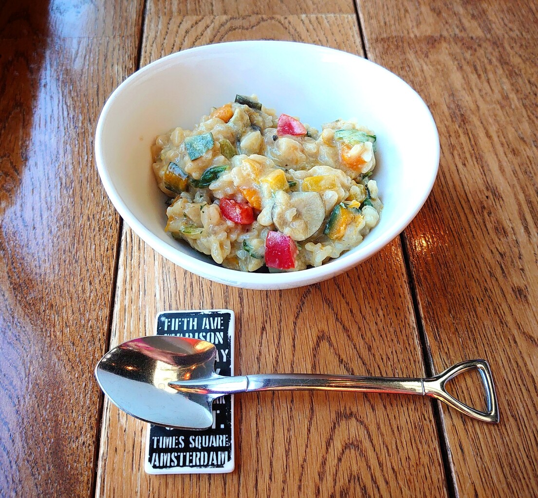 ◆豆乳とアンチョビのリゾット もち麦入り