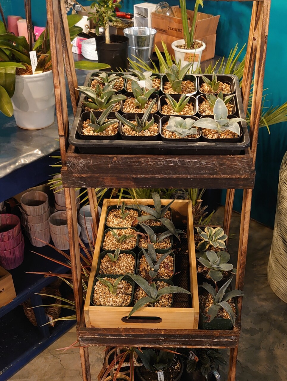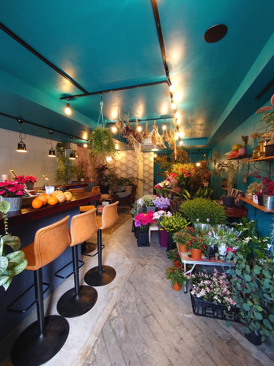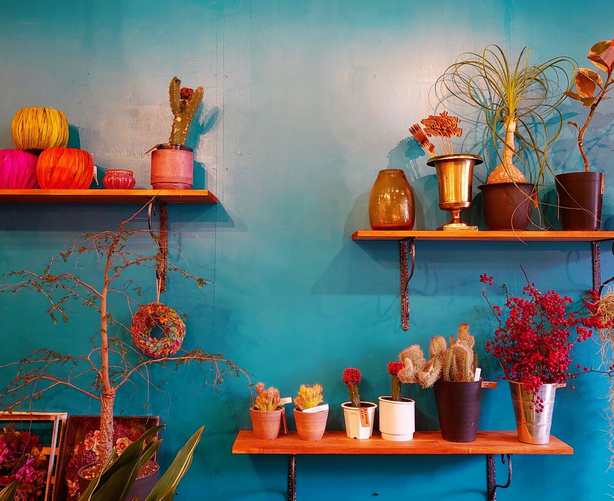 一面ブルーの店内✰°*。花たちが映えてます⤴
