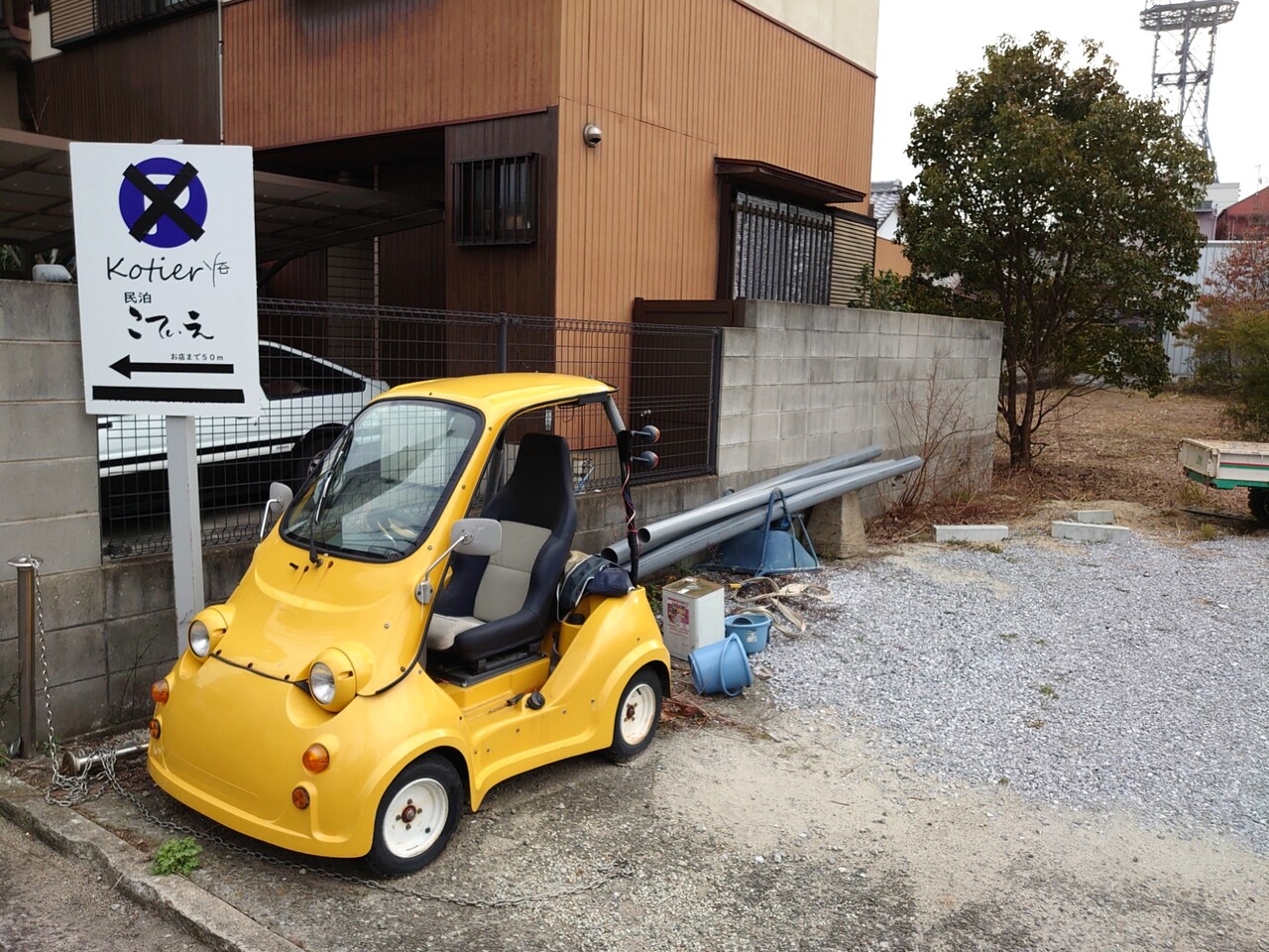 P・黄色いミニカーが目印(お店はここから徒歩すぐ)