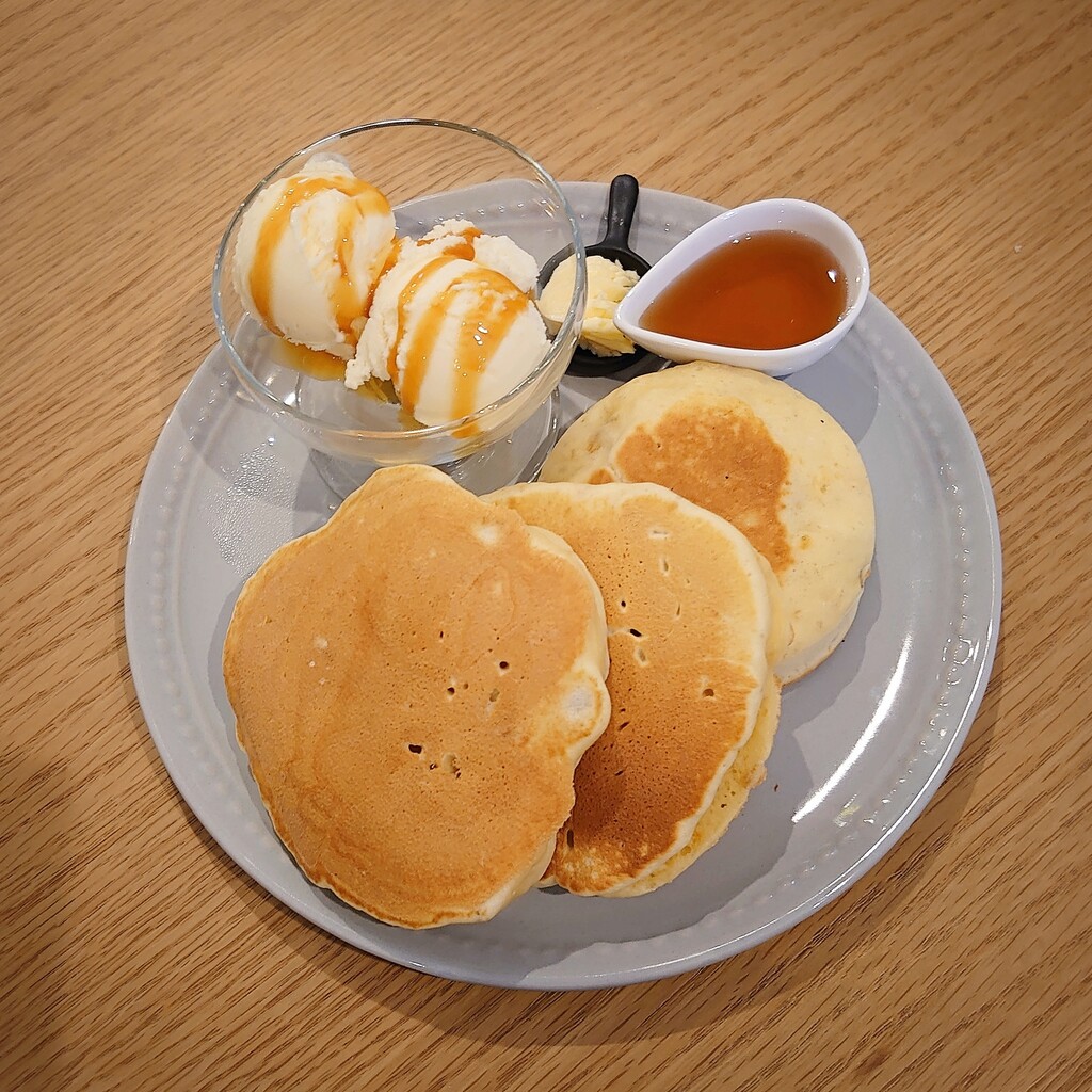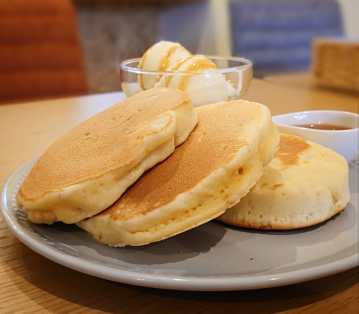小振りながら、しっかりした生地のパンケーキが3枚♬