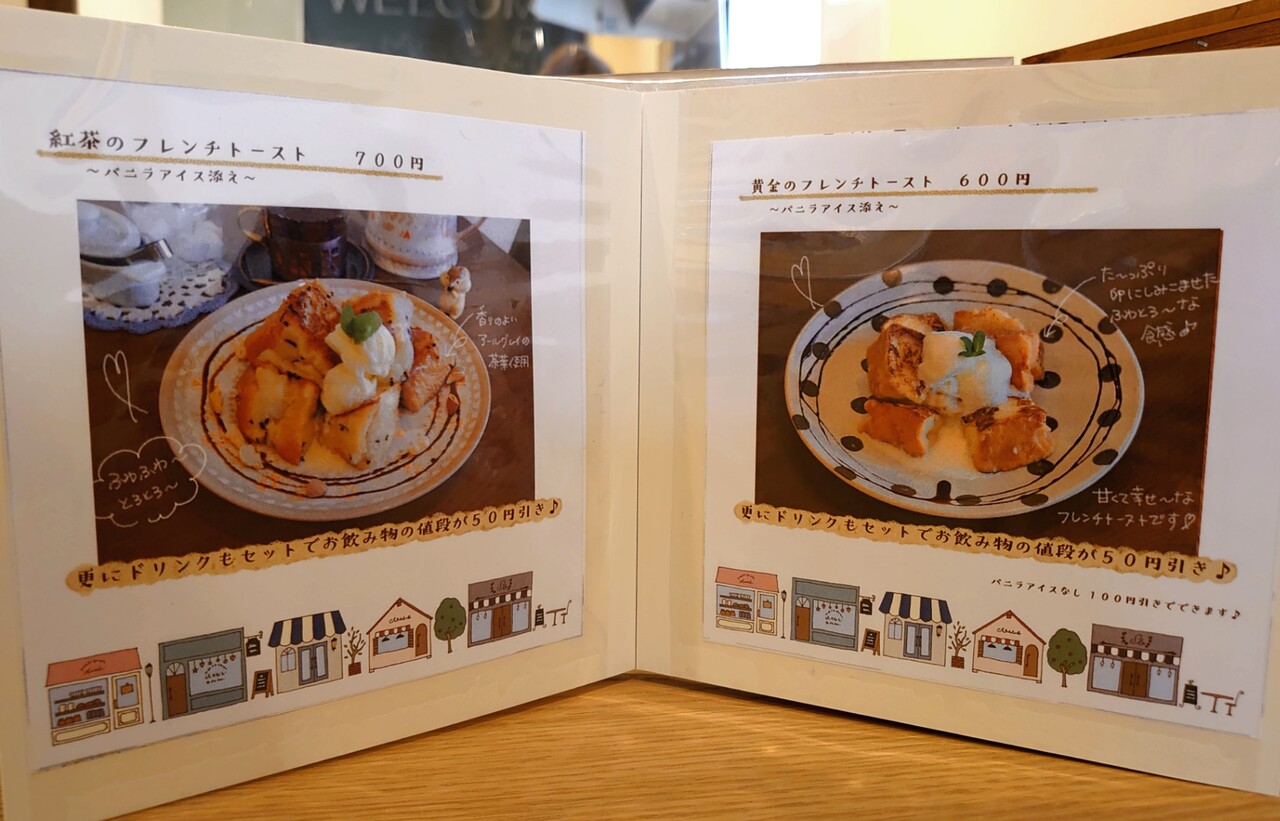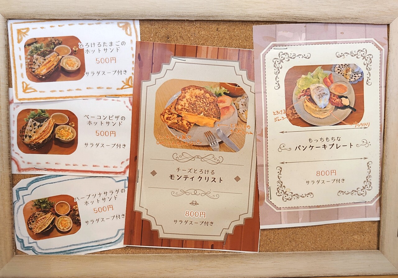 軽く食べられるワンコインのサンドイッチや、フレンチトーストもあります。
