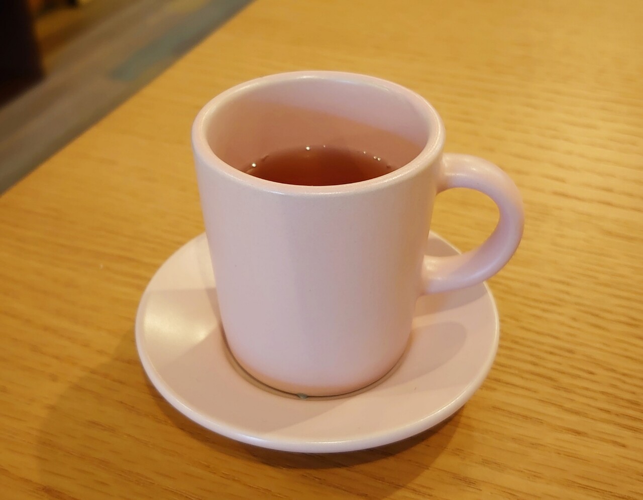席に座ると、サービスドリンクの温かい紅茶が出てきました♡