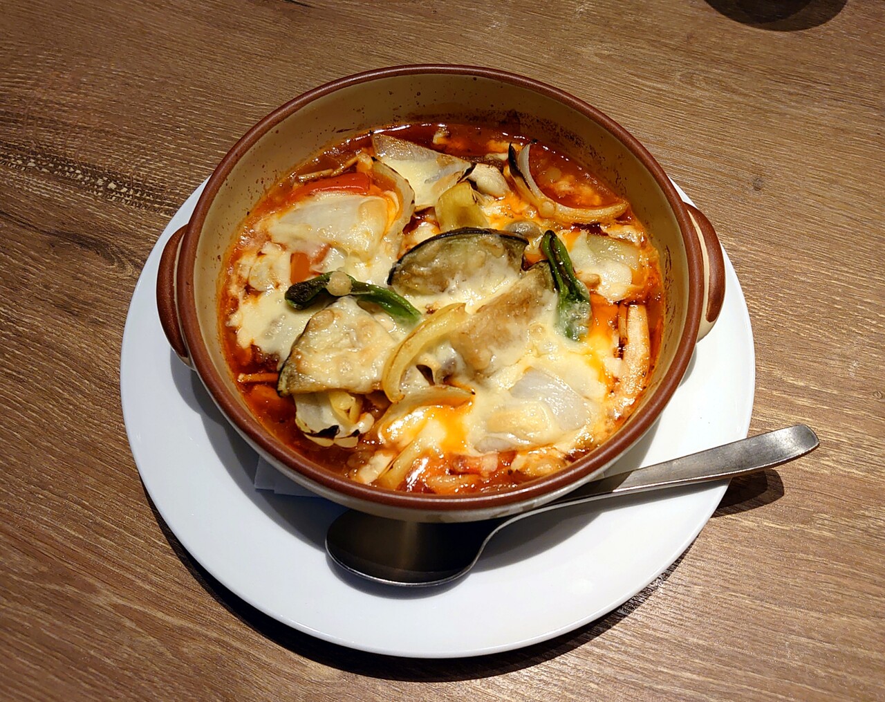 *牛すじと香味野菜のトマト煮オーブン焼き 728円(セット910円)