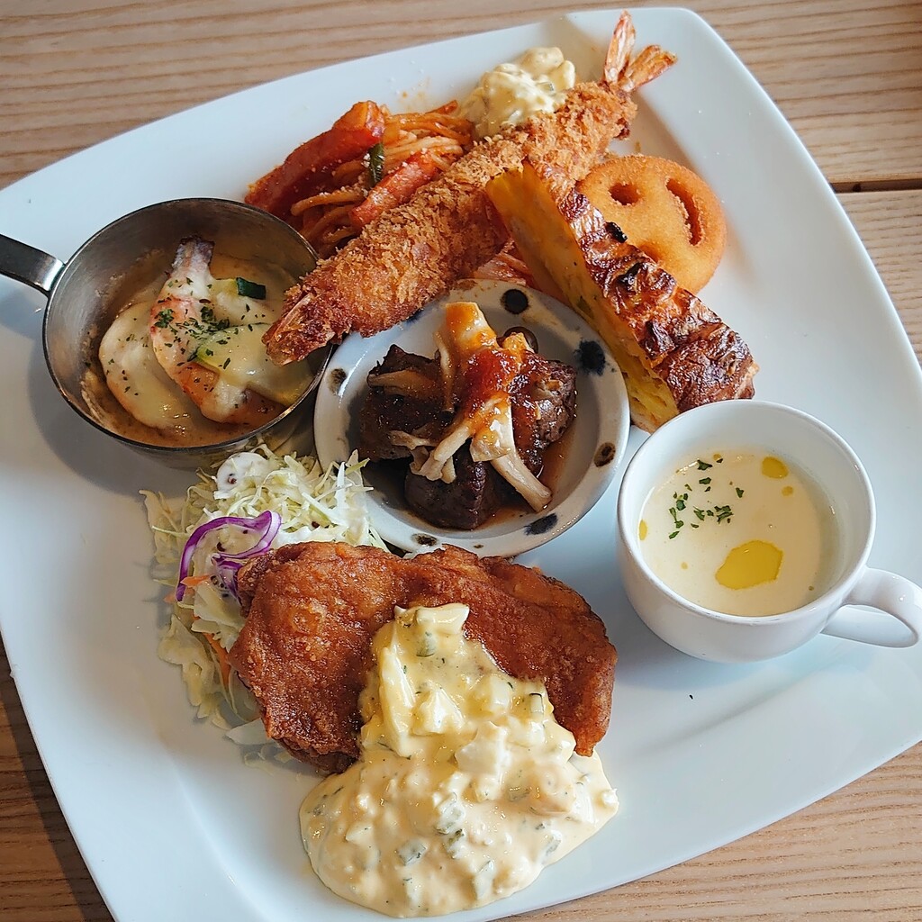 エビフライ、スパゲティ、ミニステーキ、グラタンなどなど