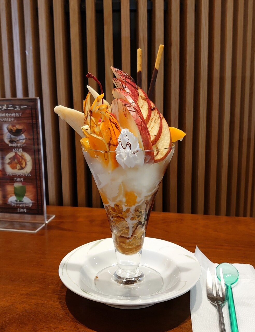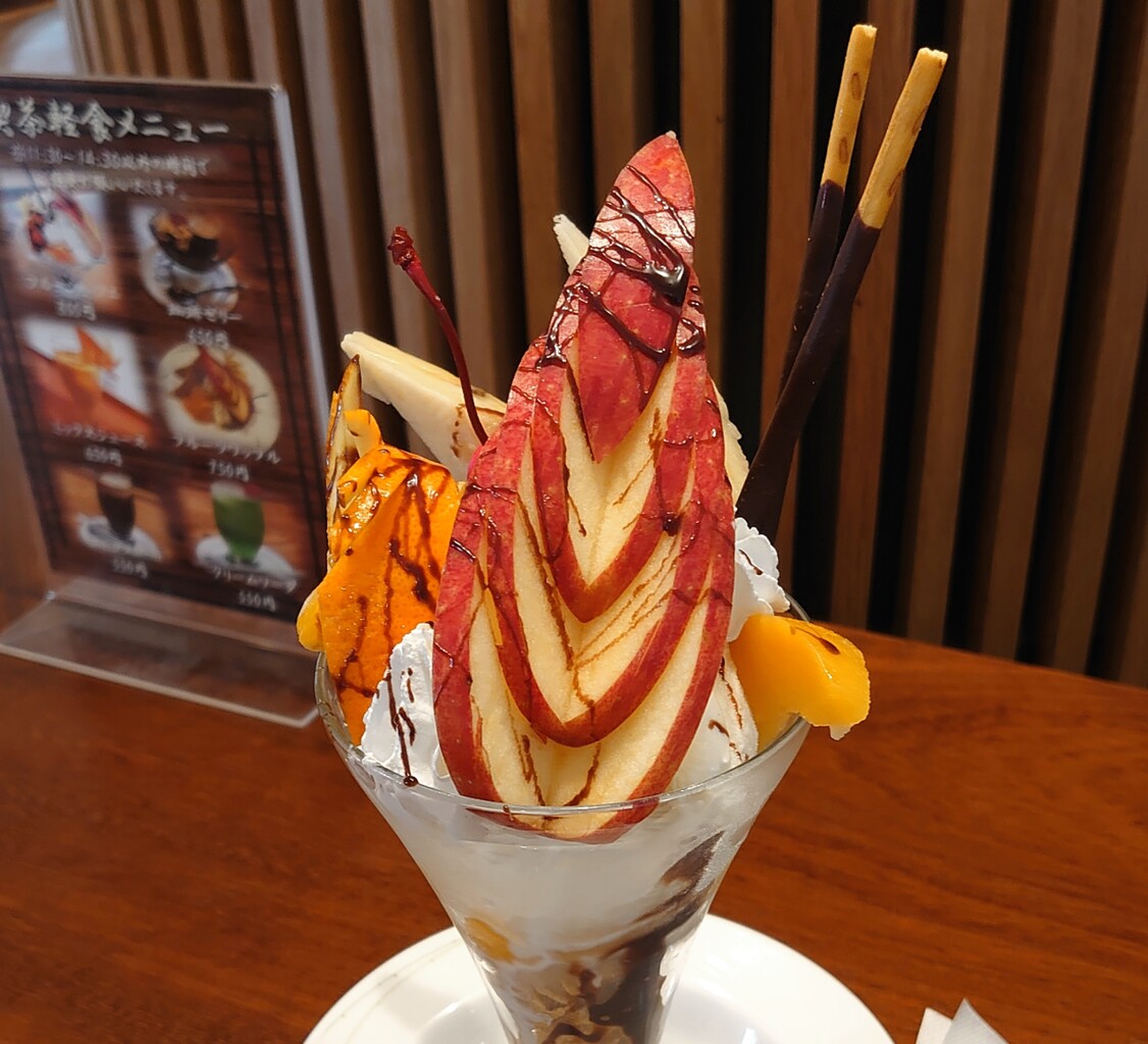 サクランボと、リンゴのカットが喫茶店のパフェだー♡