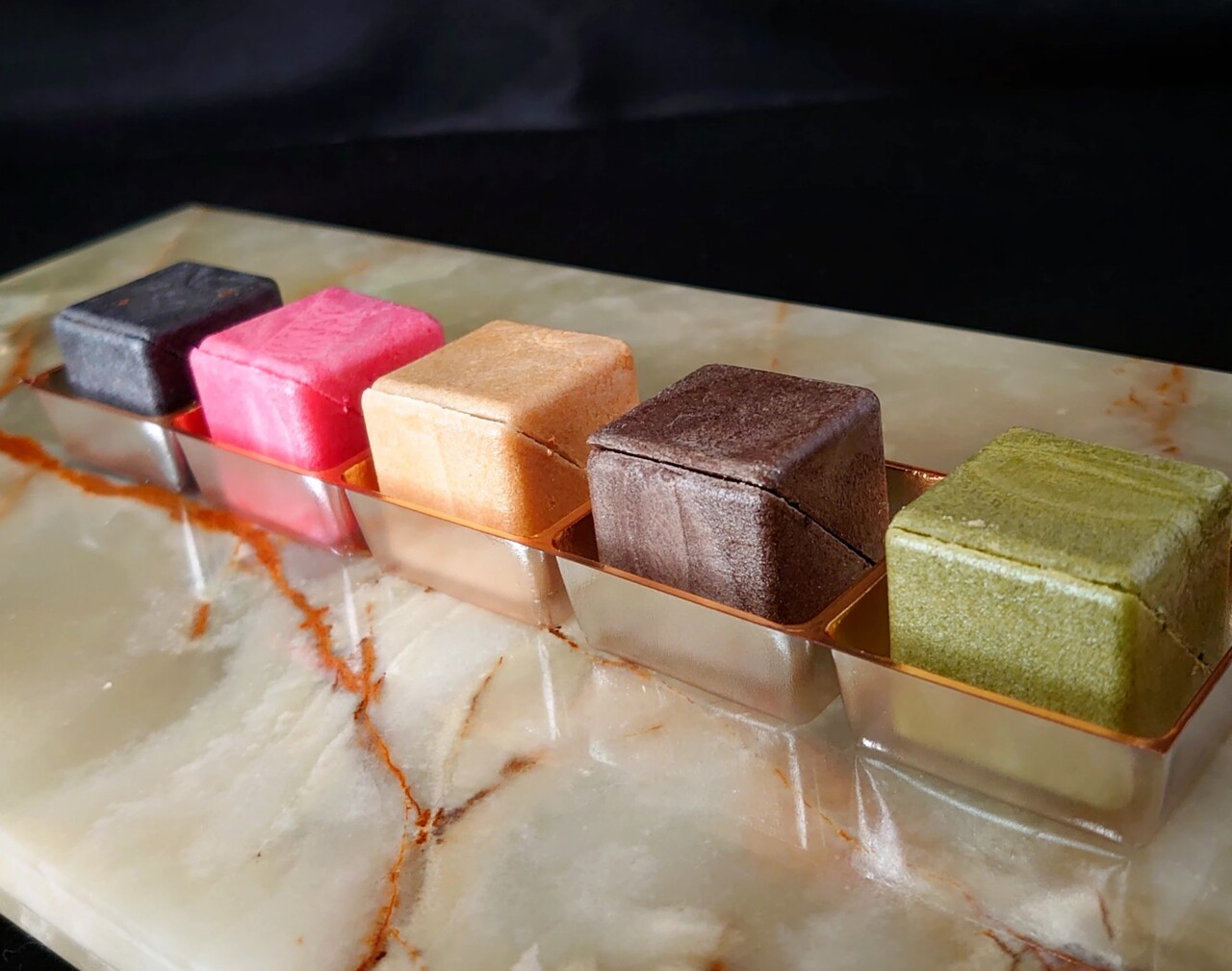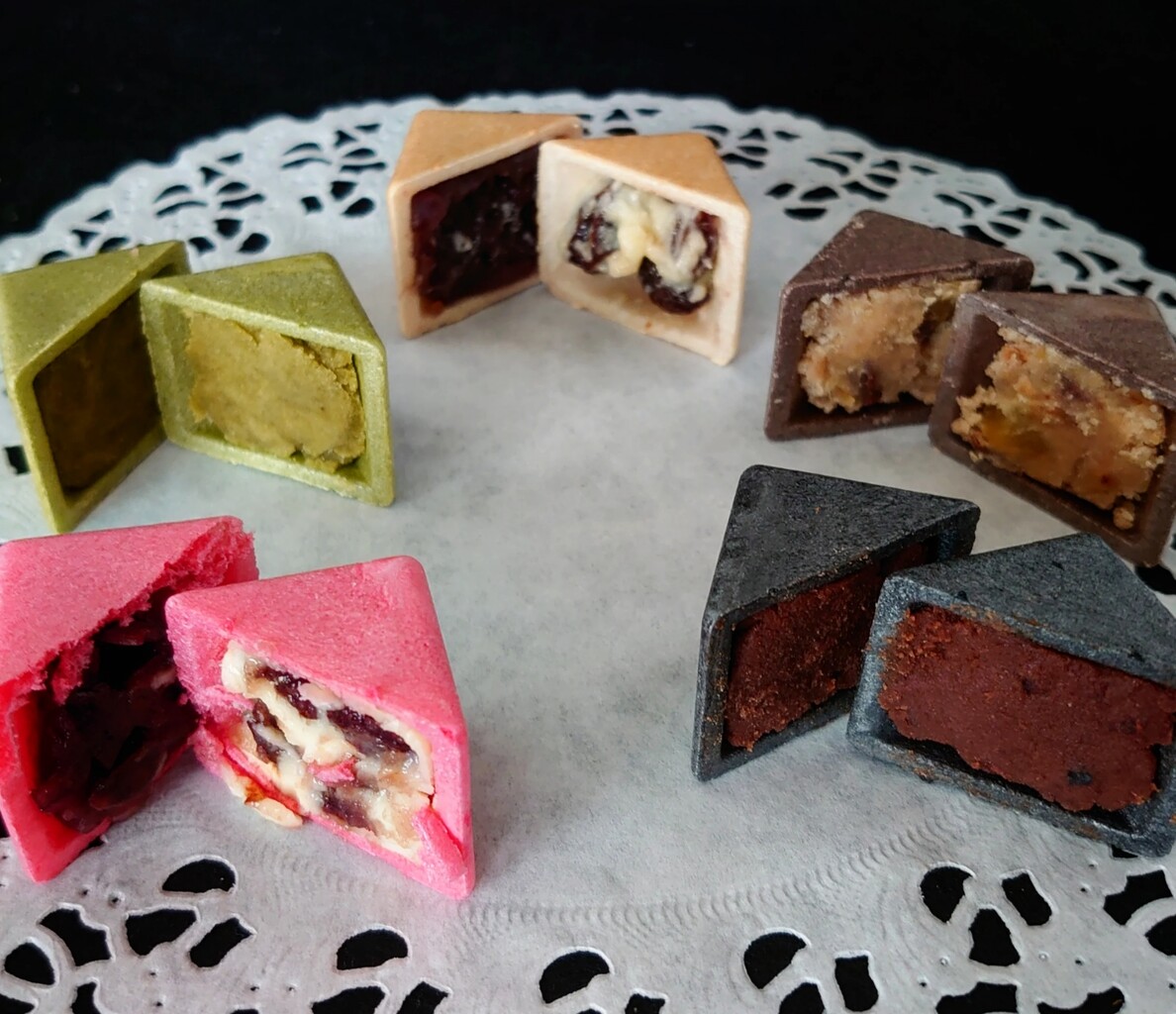 チョコ羊羹、柚羊羹、黒ごまドライフルーツ羊羹、栗羊羹