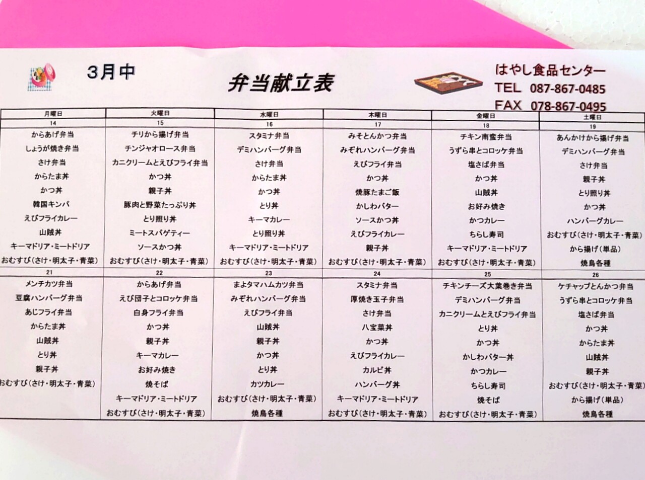 3月のメニュー