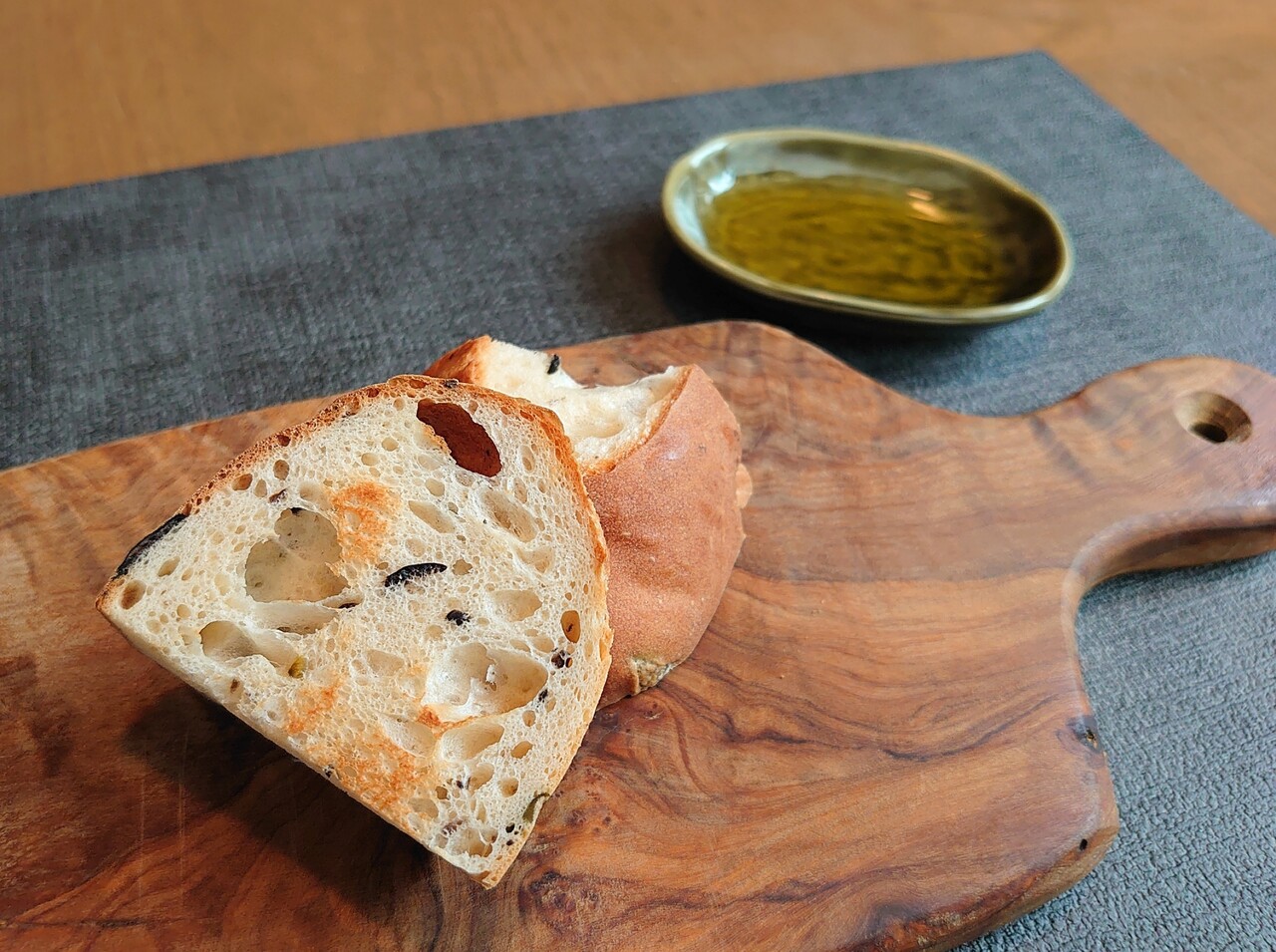 小豆島のオリーブを練りこんだフォカッチャ!小豆島のエキストラバージンオイルで♡