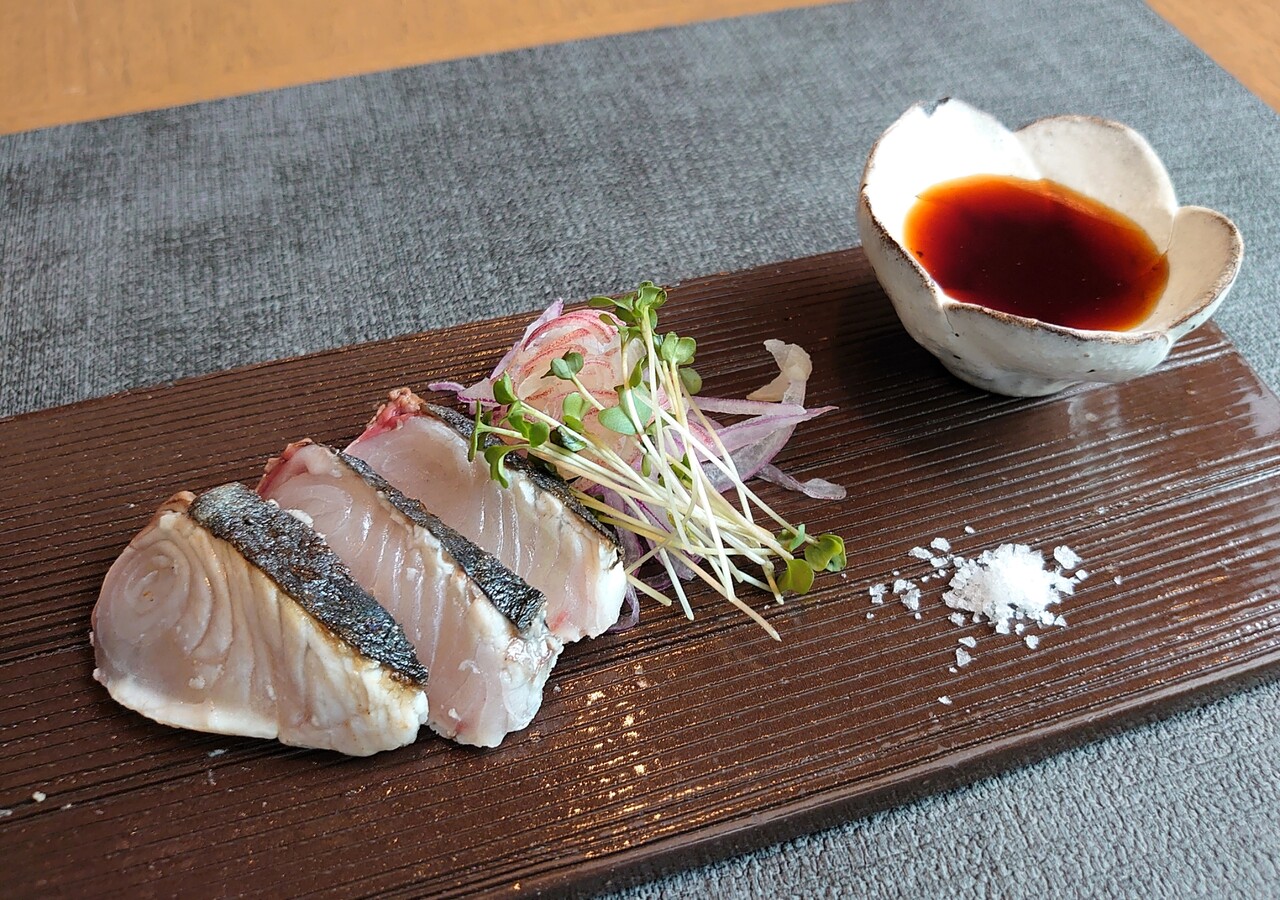 ・地物サワラの鉄板タタキ