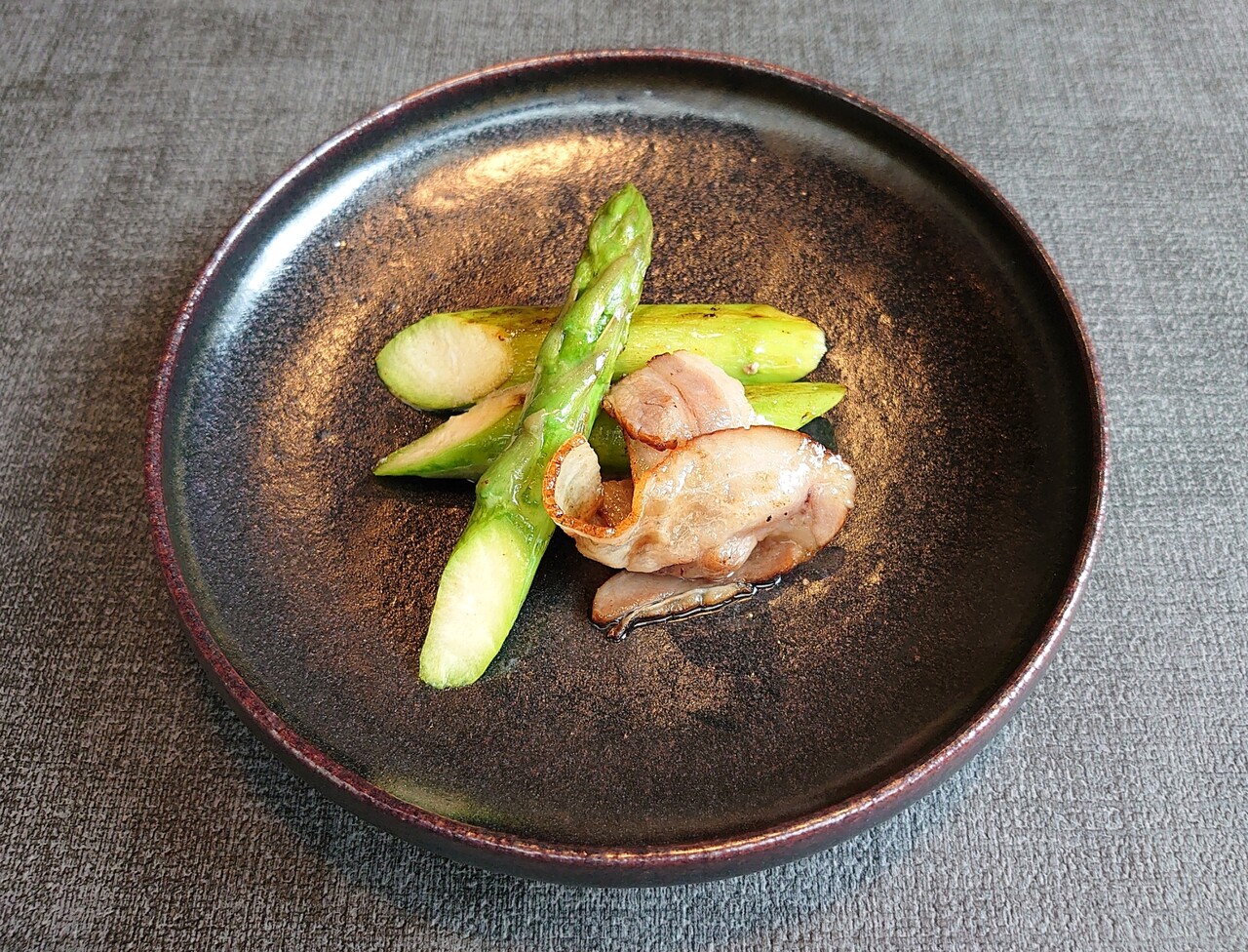 ・香川県産グリーンアスパラ「さぬきのめざめ」とオリーブ夢豚自家製ベーコン鉄板焼き