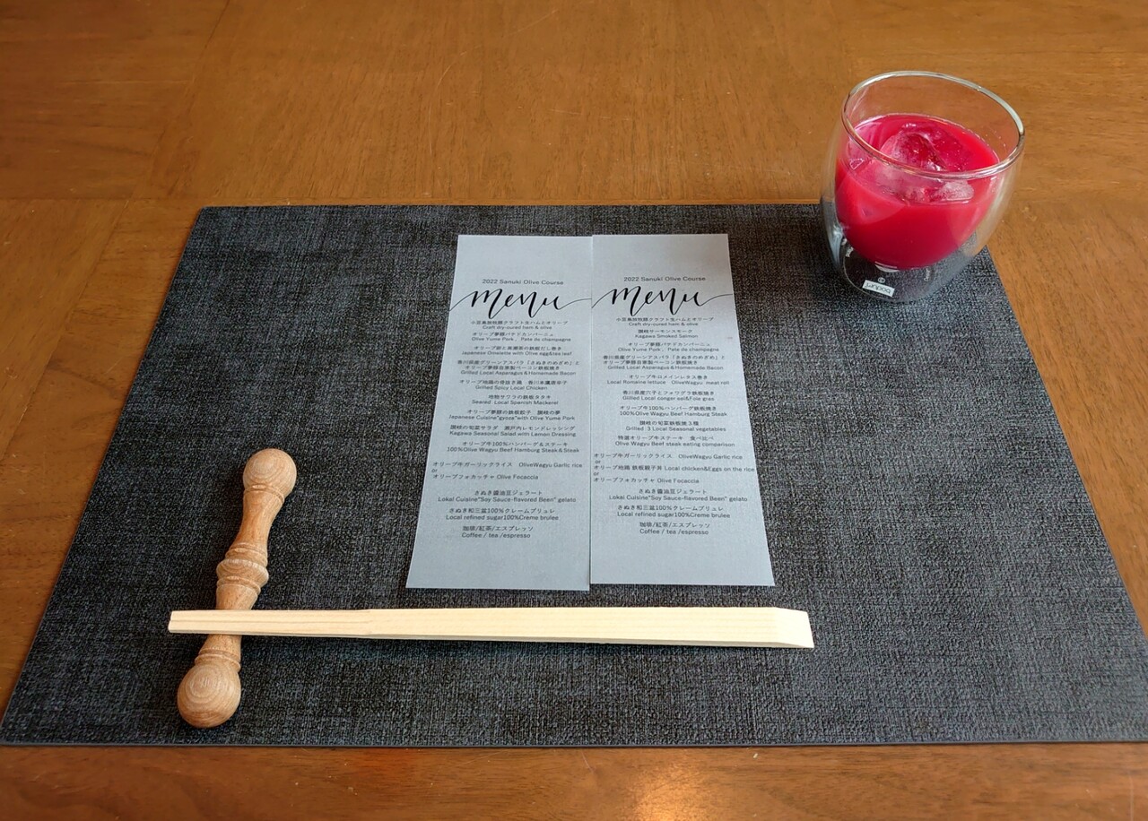 4月から始まるディナー「讃岐オリーブを使ったコース料理」です。