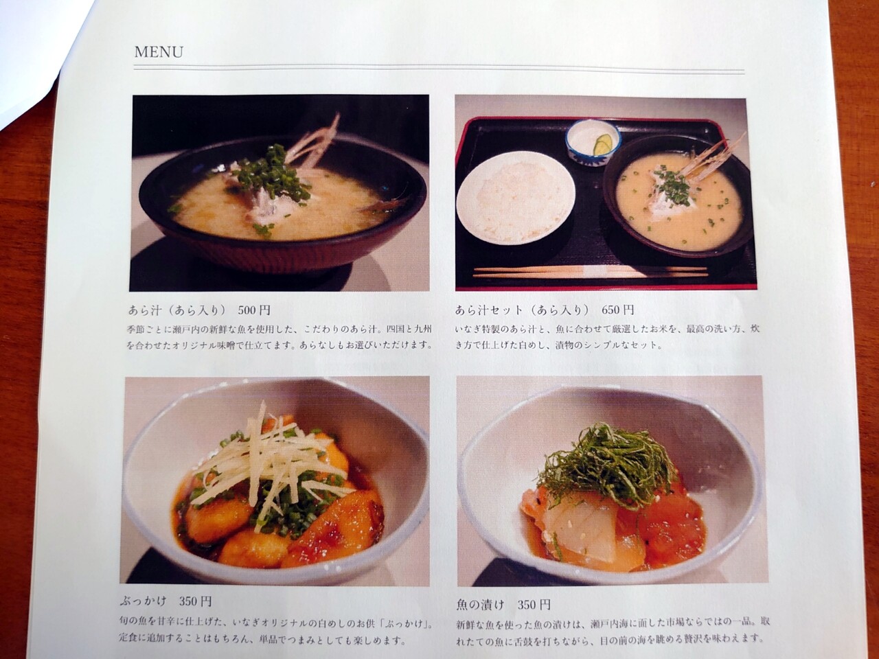 魚と米を味わう「あら汁 いなぎ」
