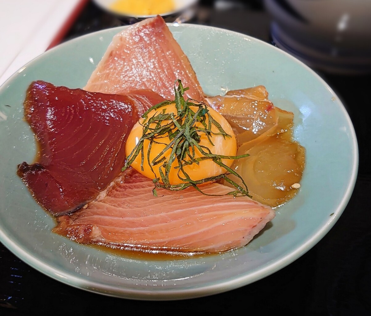 魚の漬けは卵黄入りなので、ご飯にのっけて~♬ウマ!