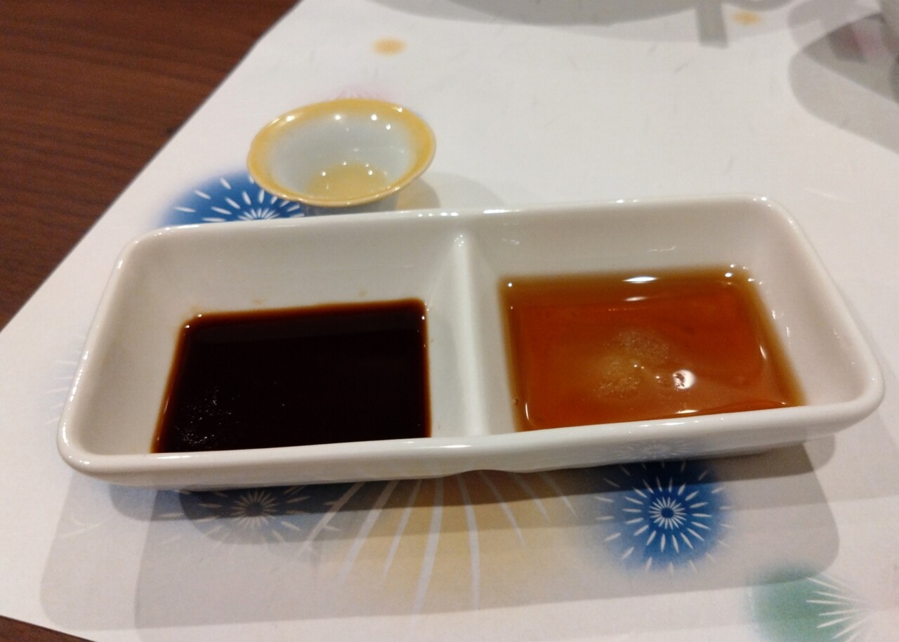 薩摩しょう油、ごま油と塩、味変が楽しめる柚子