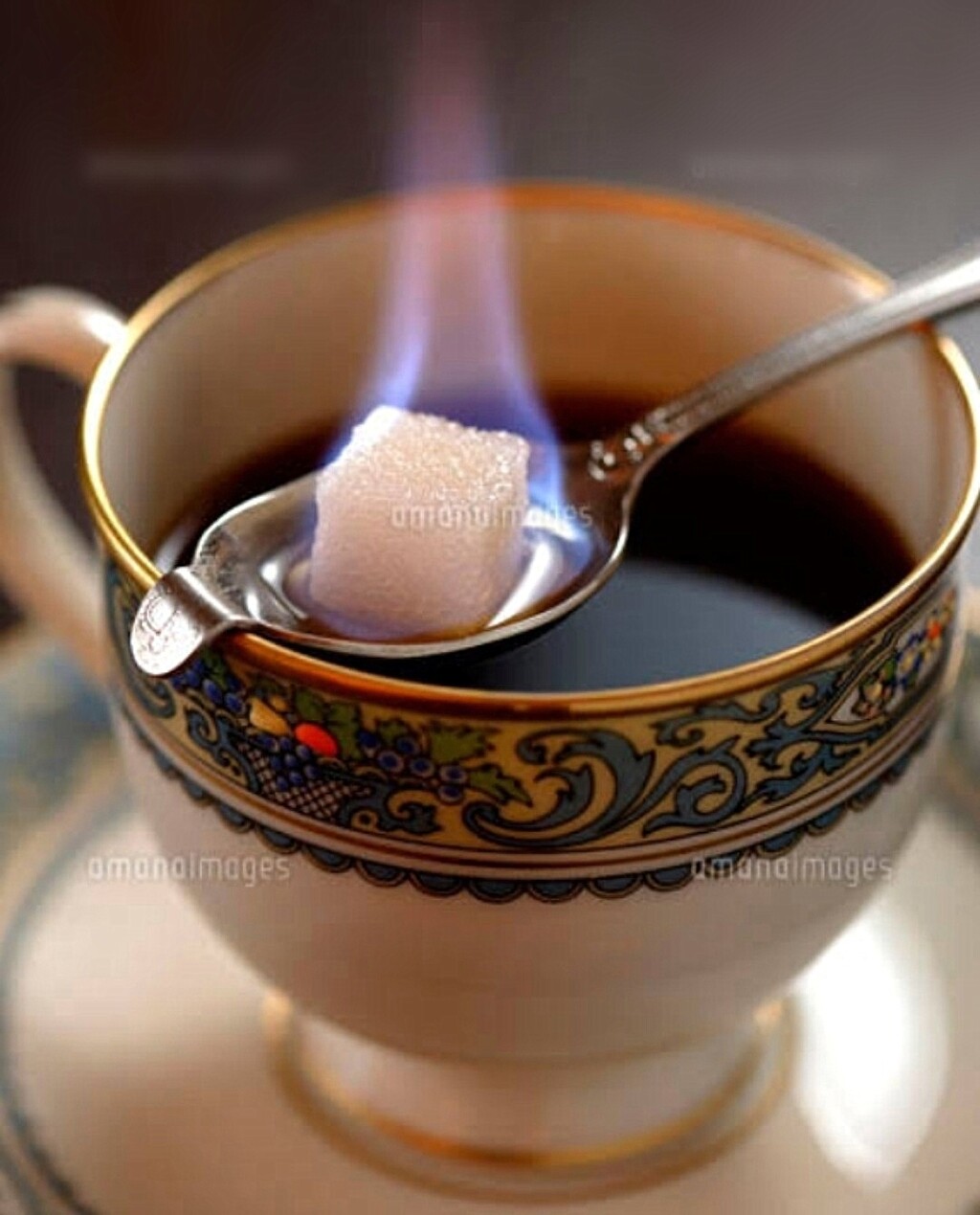 角砂糖にブランデーを染み込ませ、火を付けます。炎が香りを引き立てて映えて美味しくなるんです♪