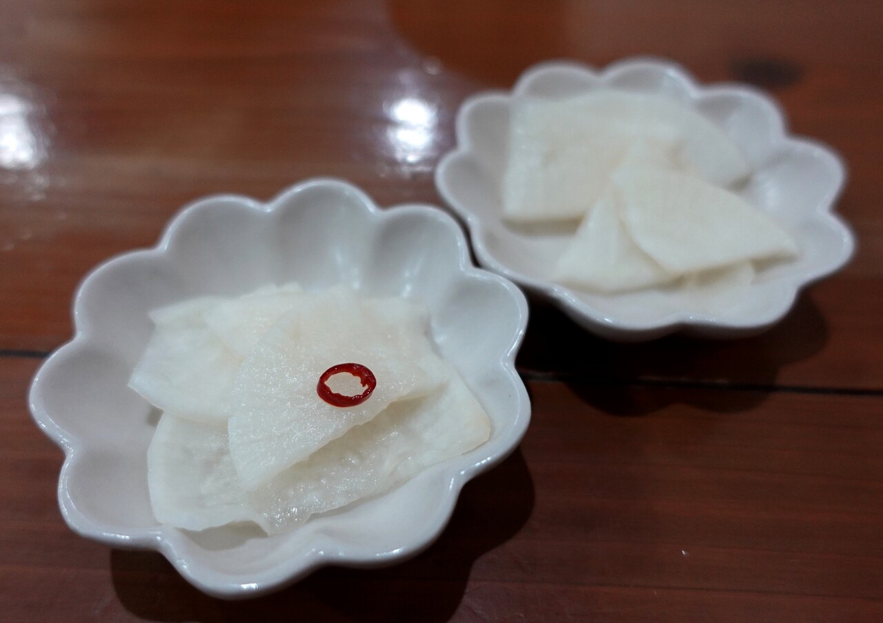 テーブルにある大根の漬け物は食べ放題!これがまた美味しいの◎