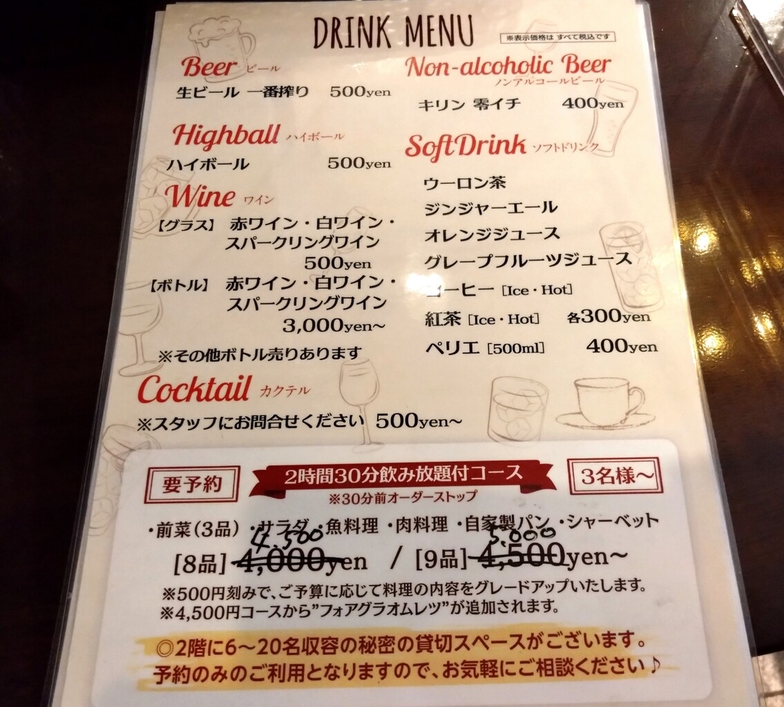 どちらもドリンク付き!