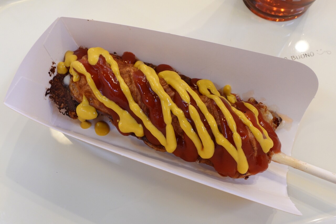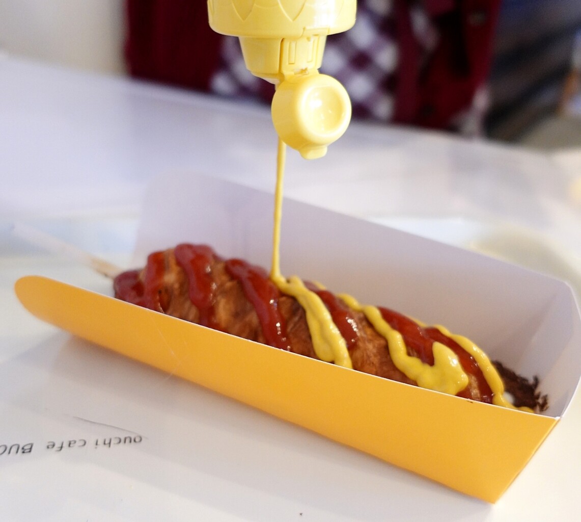 クロワッサンワッフルに粒あんをサンドし、人気のきなこクリームをトッピング!美味しい♬