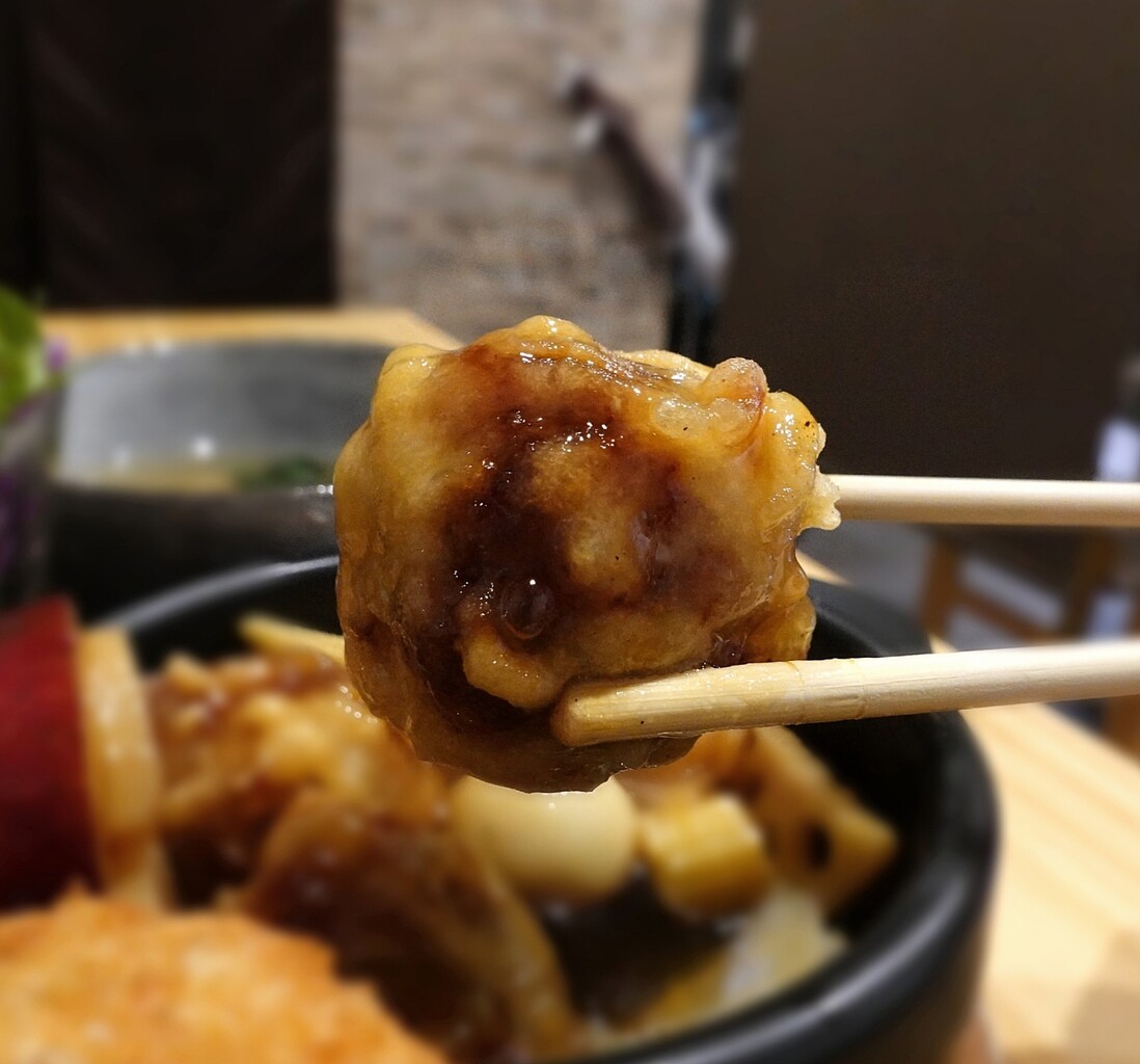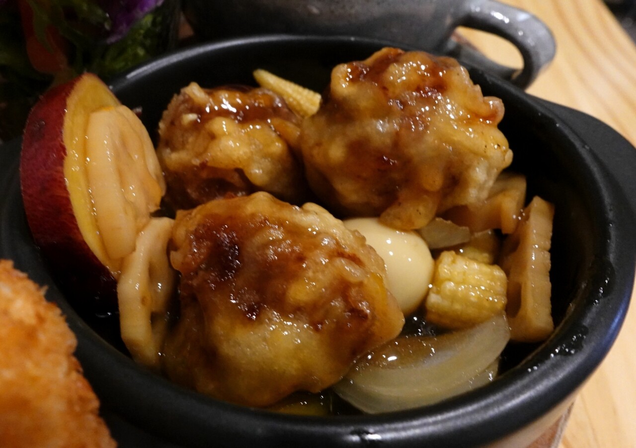 タマネギ、うずら、コーンも入ってて黒酢も美味美味♪
