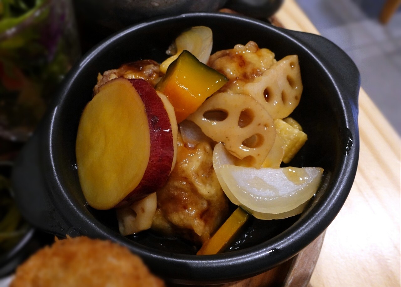 サツマイモ、レンコン、カボチャの下に大きなお肉が✽.。.:*