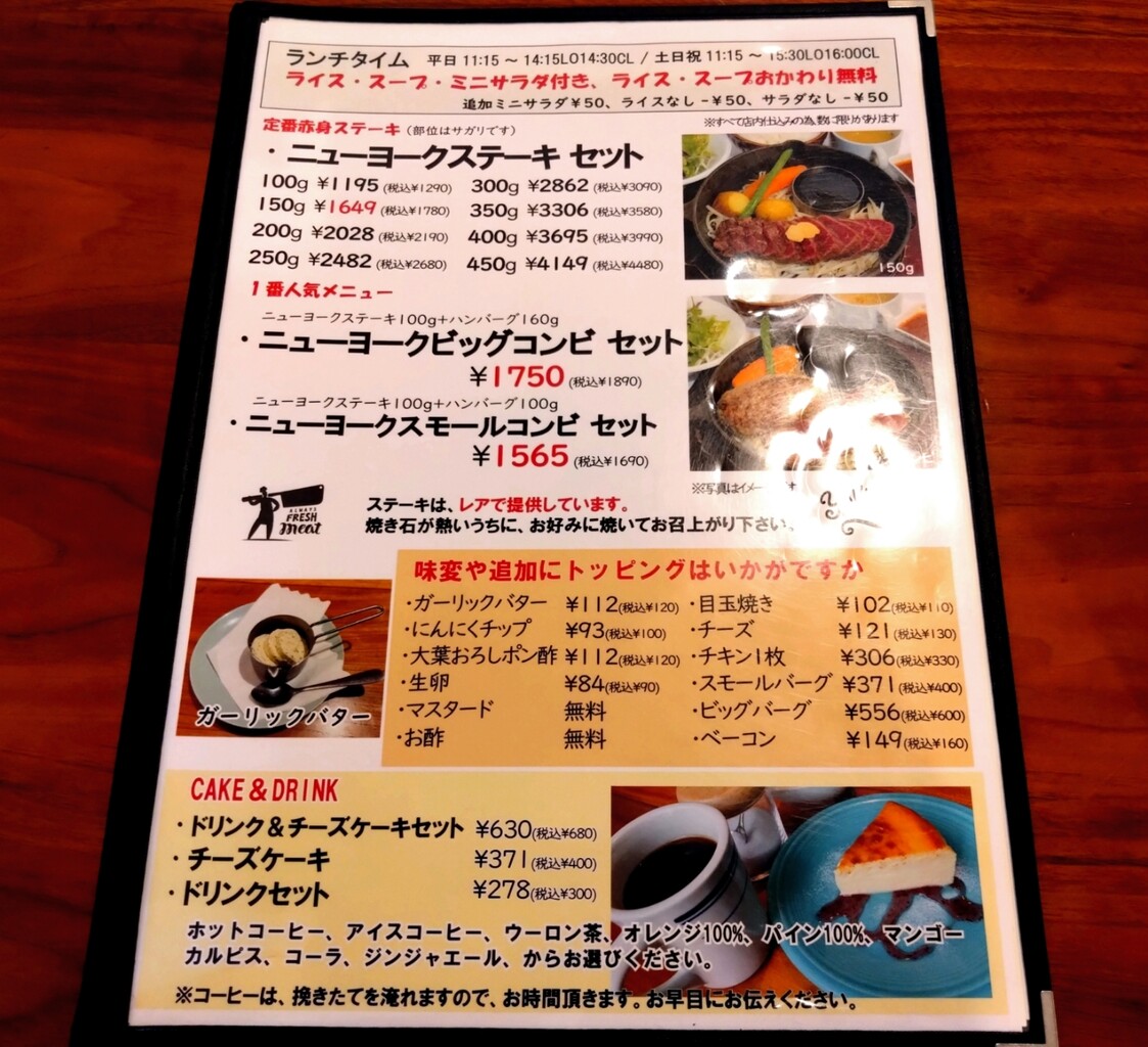 (ニューヨークステーキ100g、ハンバーグ100g)