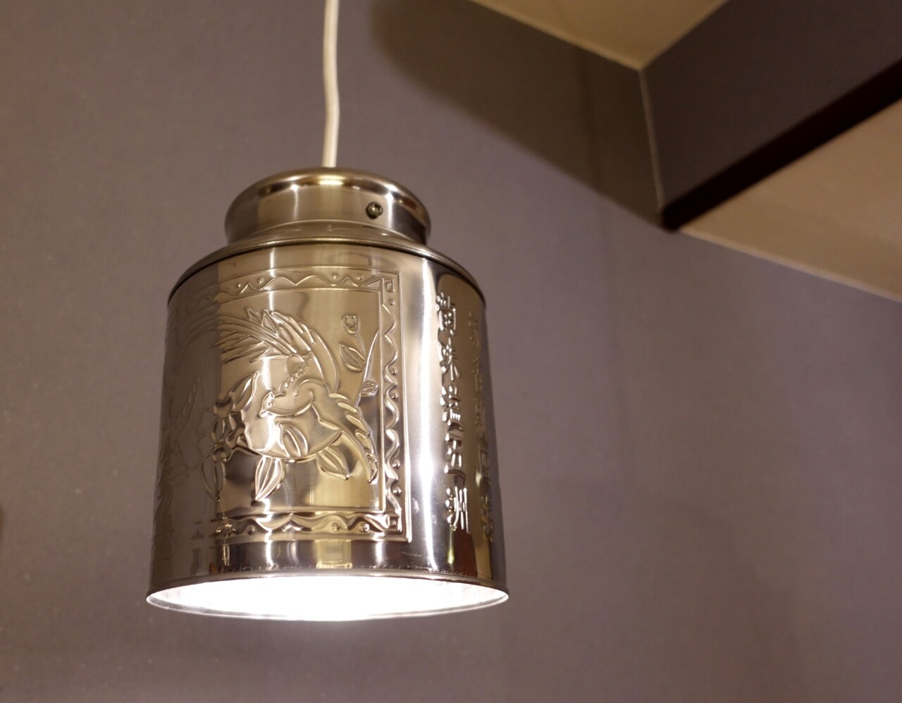茶葉の缶で作ったランプシェードいい感じ✰°*。