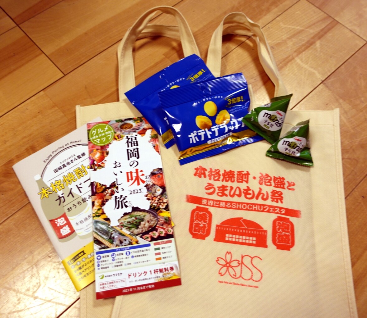 買った焼酎を入れる袋とお菓子付き♬