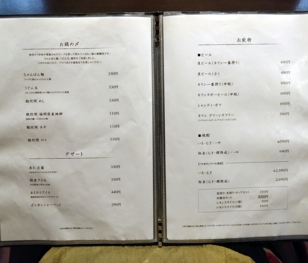*値上がりしてたので新しいメニュー表