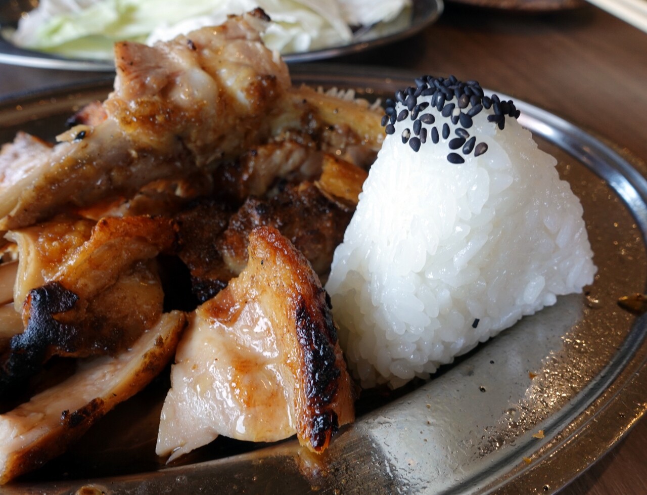 ヨシと、福岡市博多区にある骨付き鶏店で昼ご飯♬
