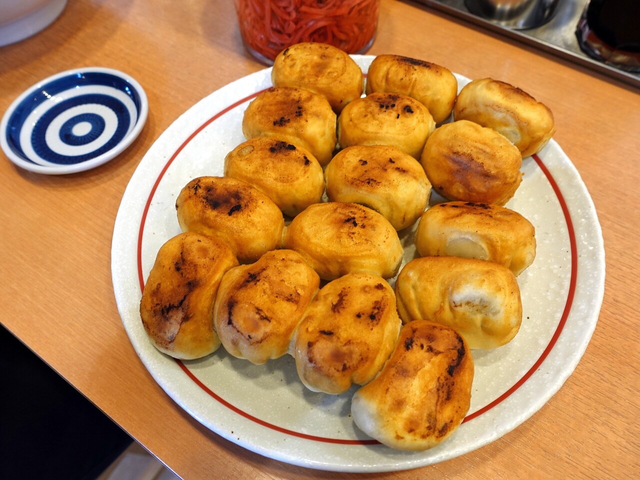 丸い餃子って初めて見た!しかも大きい♡