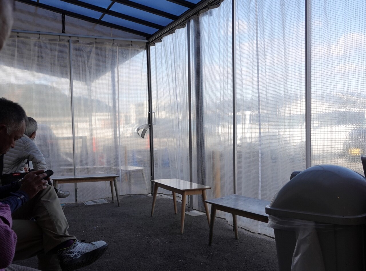 名前を書いて外のベンチで待ちます。