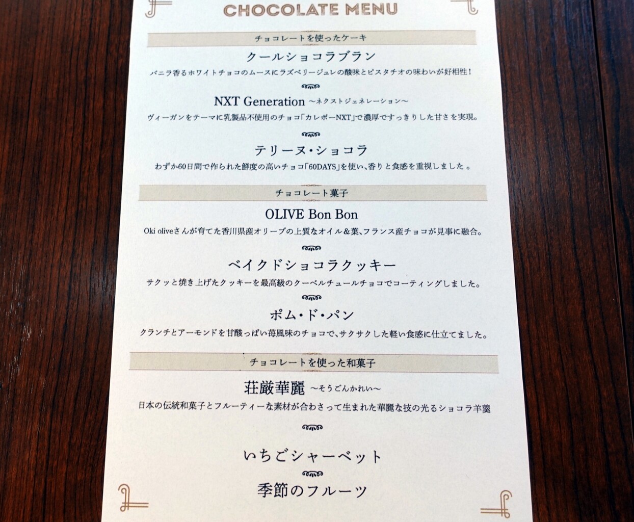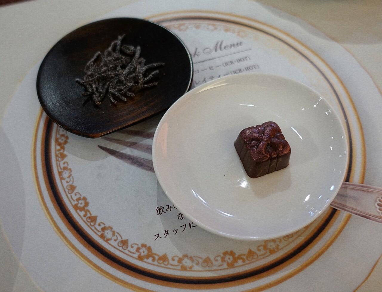 試食したのは、チョコレートのケーキ、お菓子、和菓子のワンプレート✧*。
