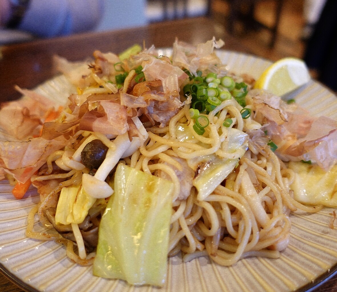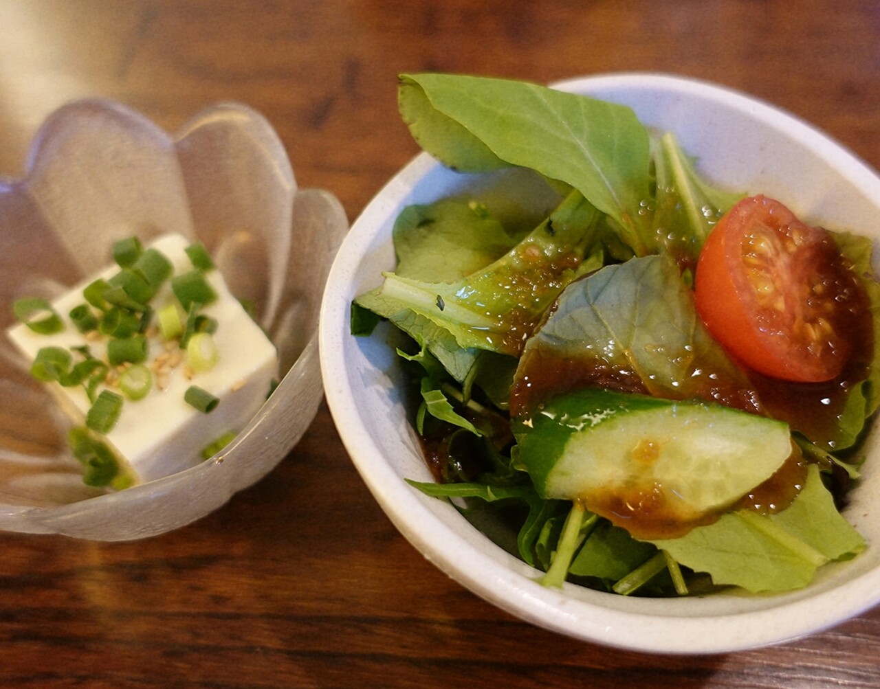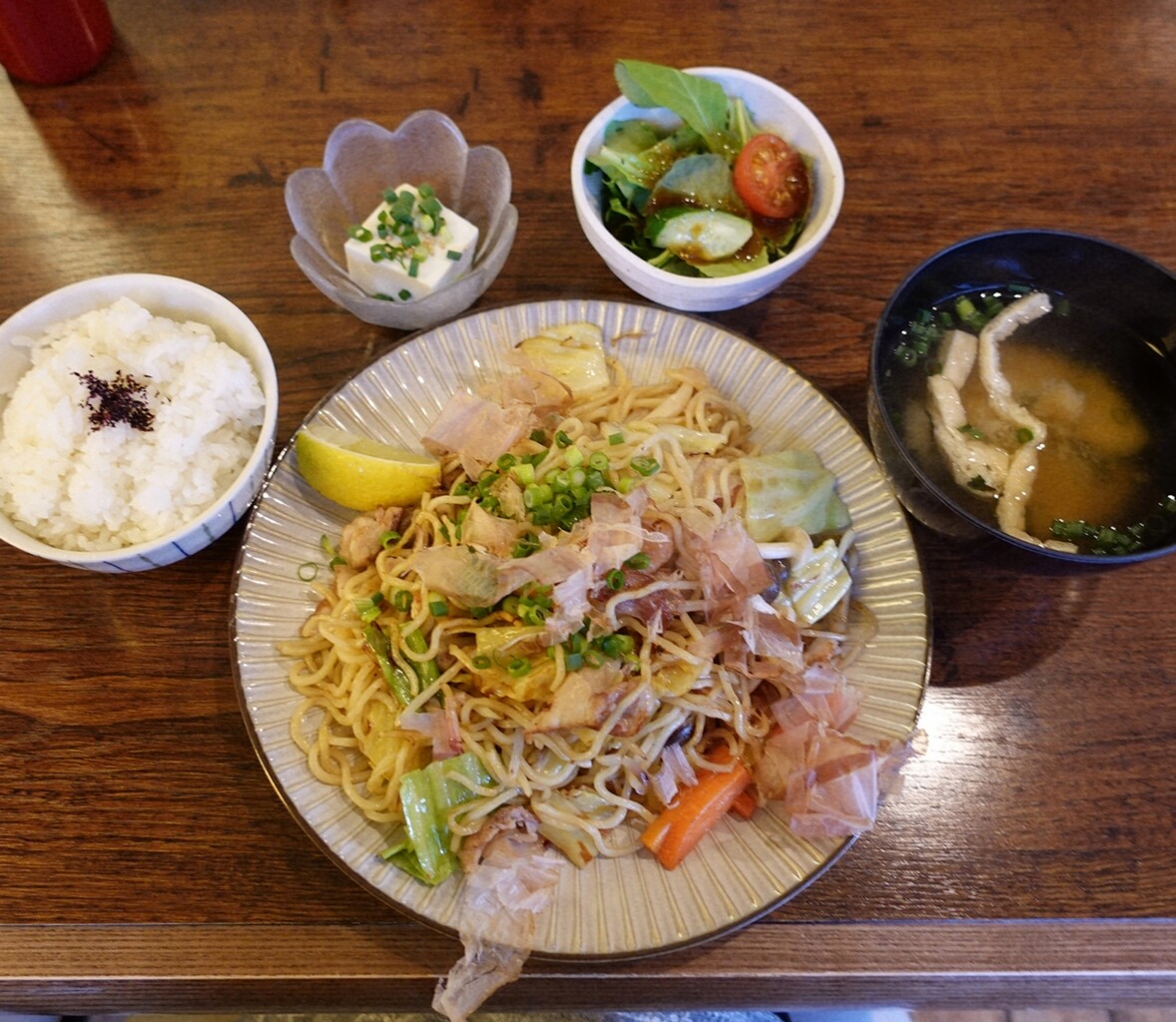 焼きそばにも、ご飯、サラダ、冷や奴、味噌汁付き♬