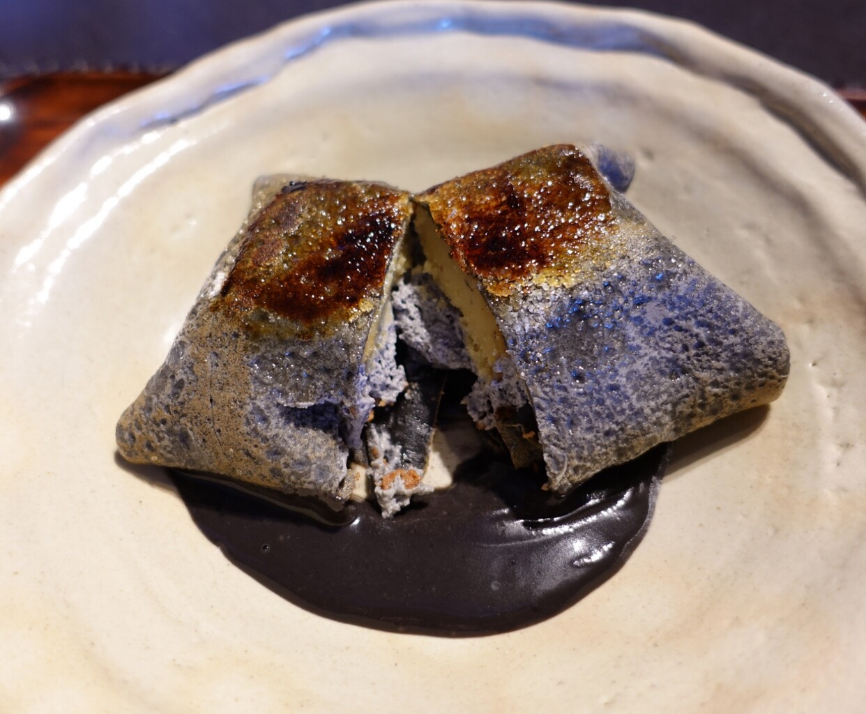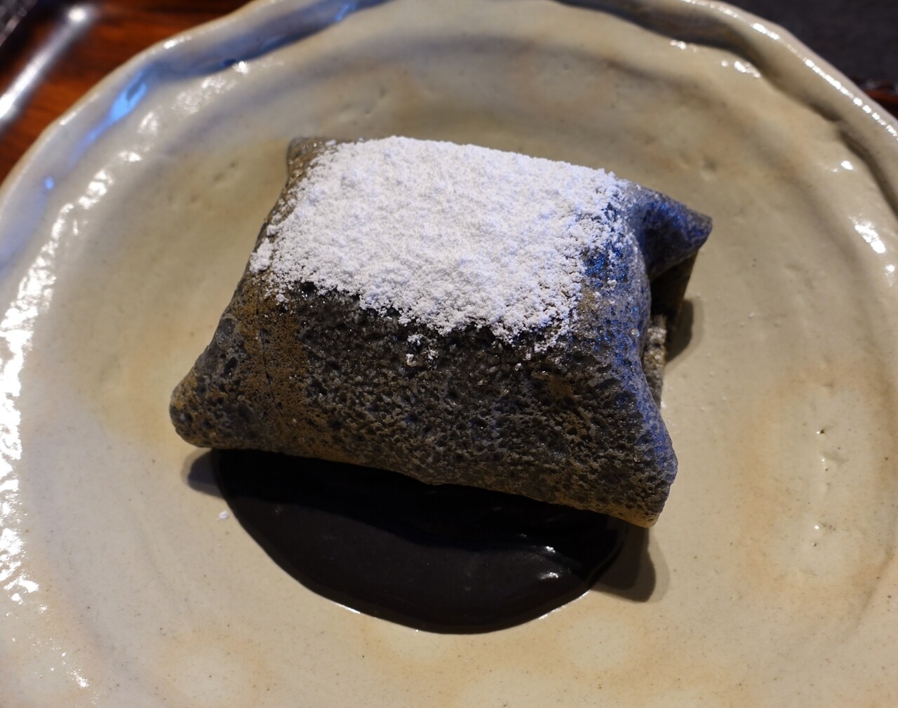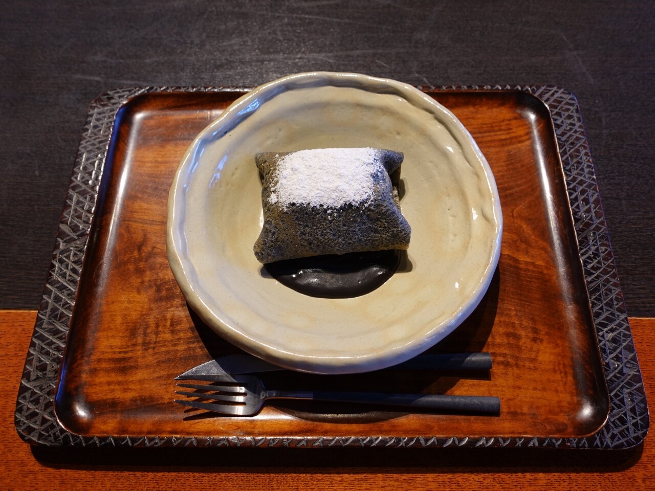 黒ごま餡の上にグレーのクレープが乗ってます!