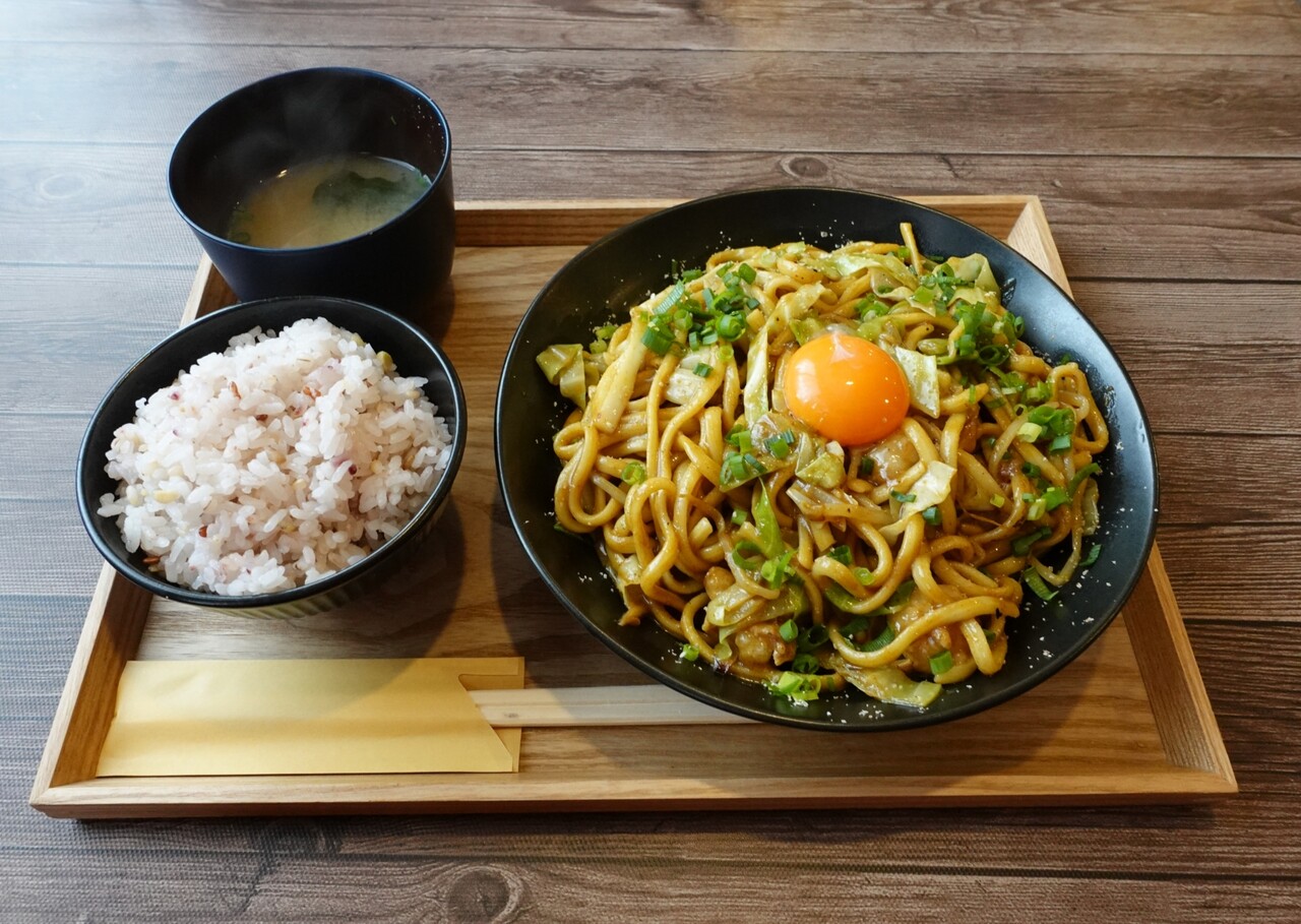 焼きそばもホルモンも、ごはんによく合う濃いめの味付け◎