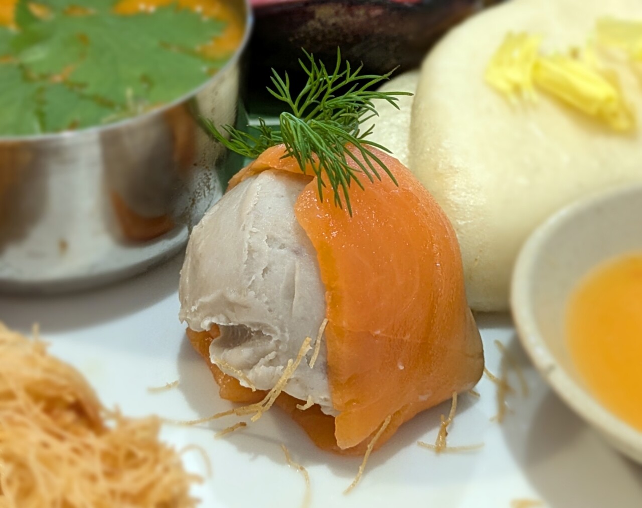 スモークサーモンと里芋の香草サラダ。