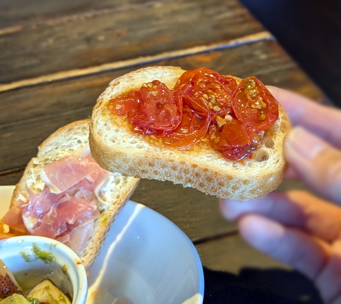 ブルスケッタ(卵サラダ、ドライトマト、生ハムとクリームチーズ)