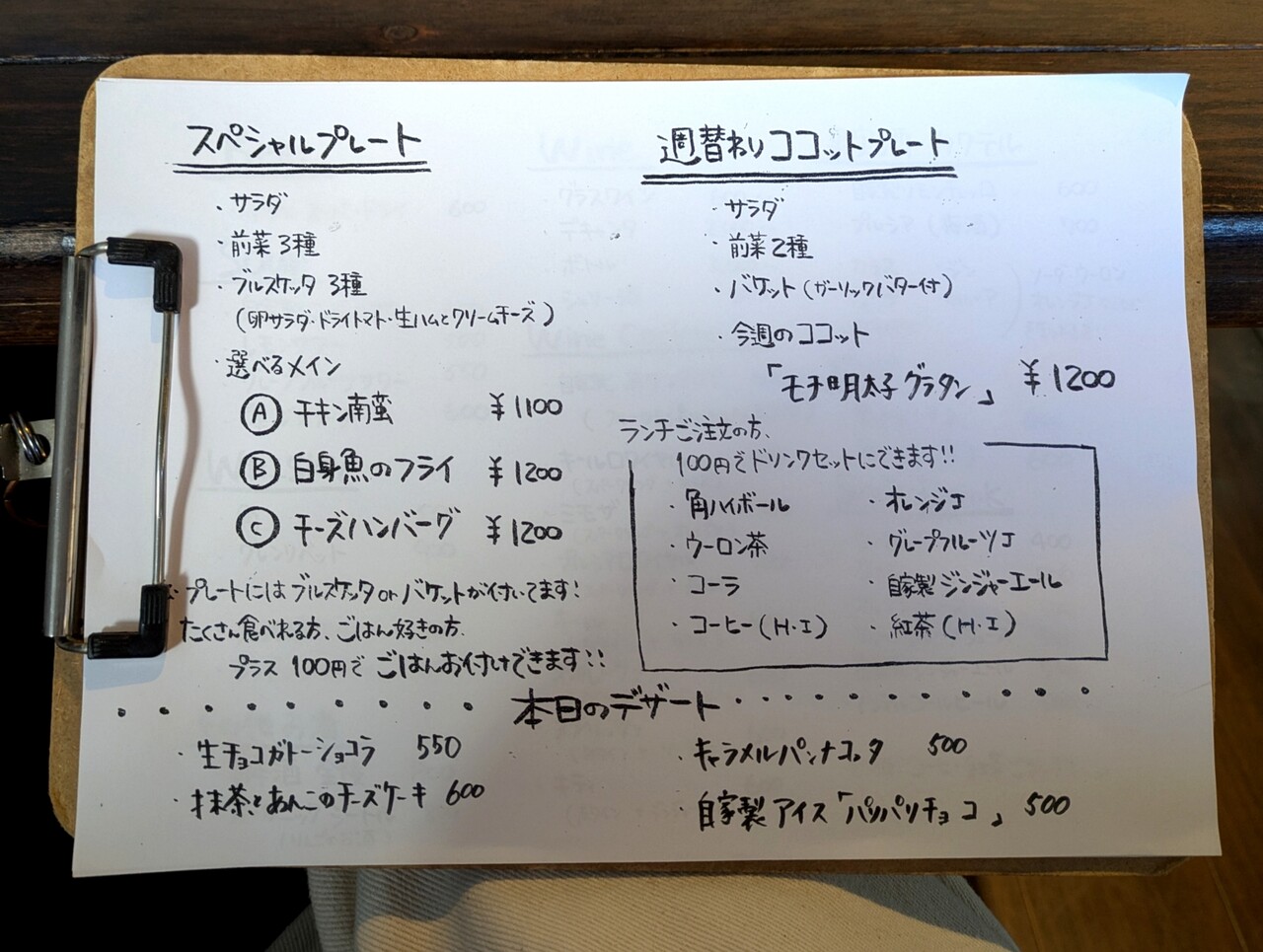 食後のドリンク 各100円