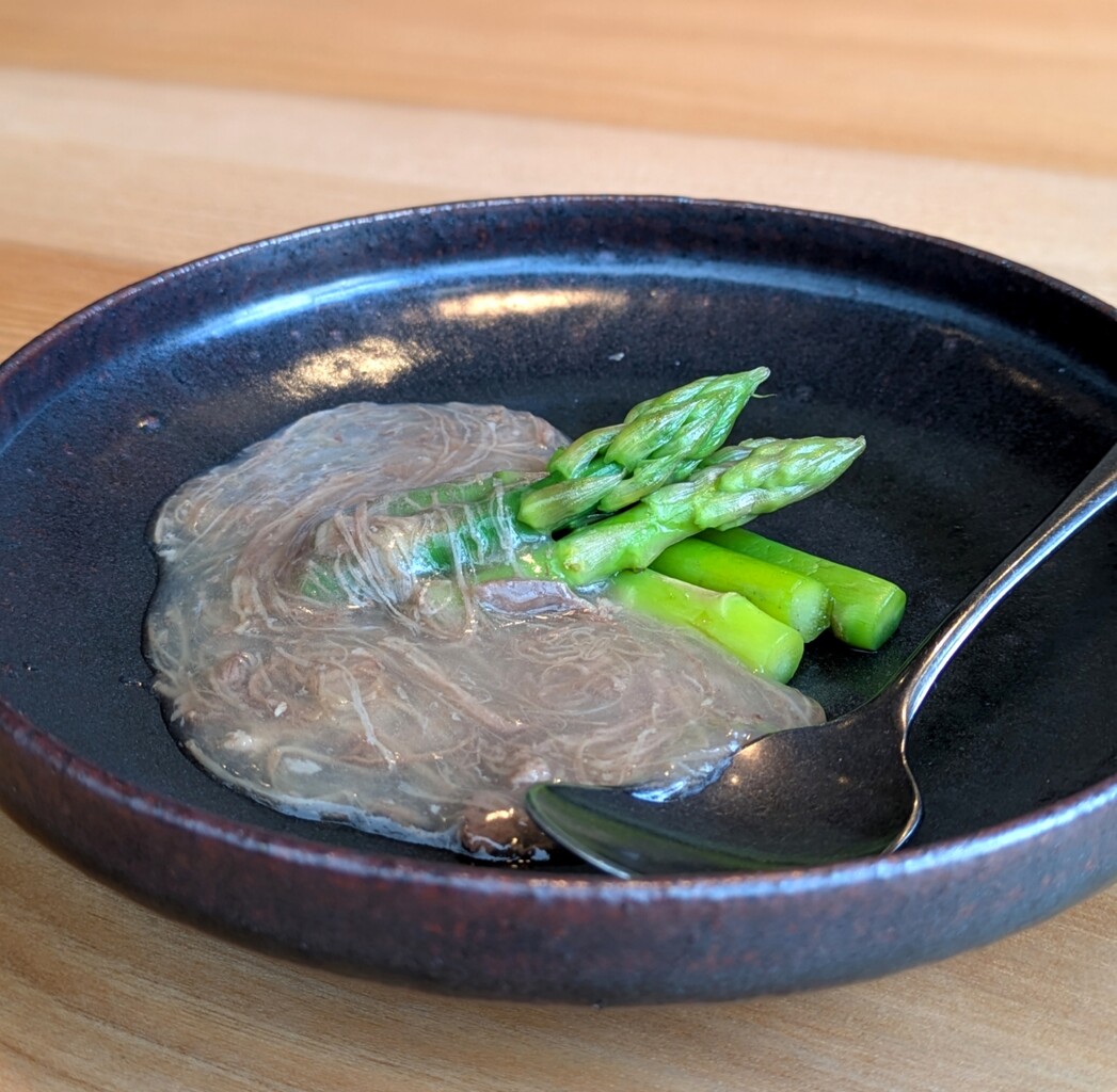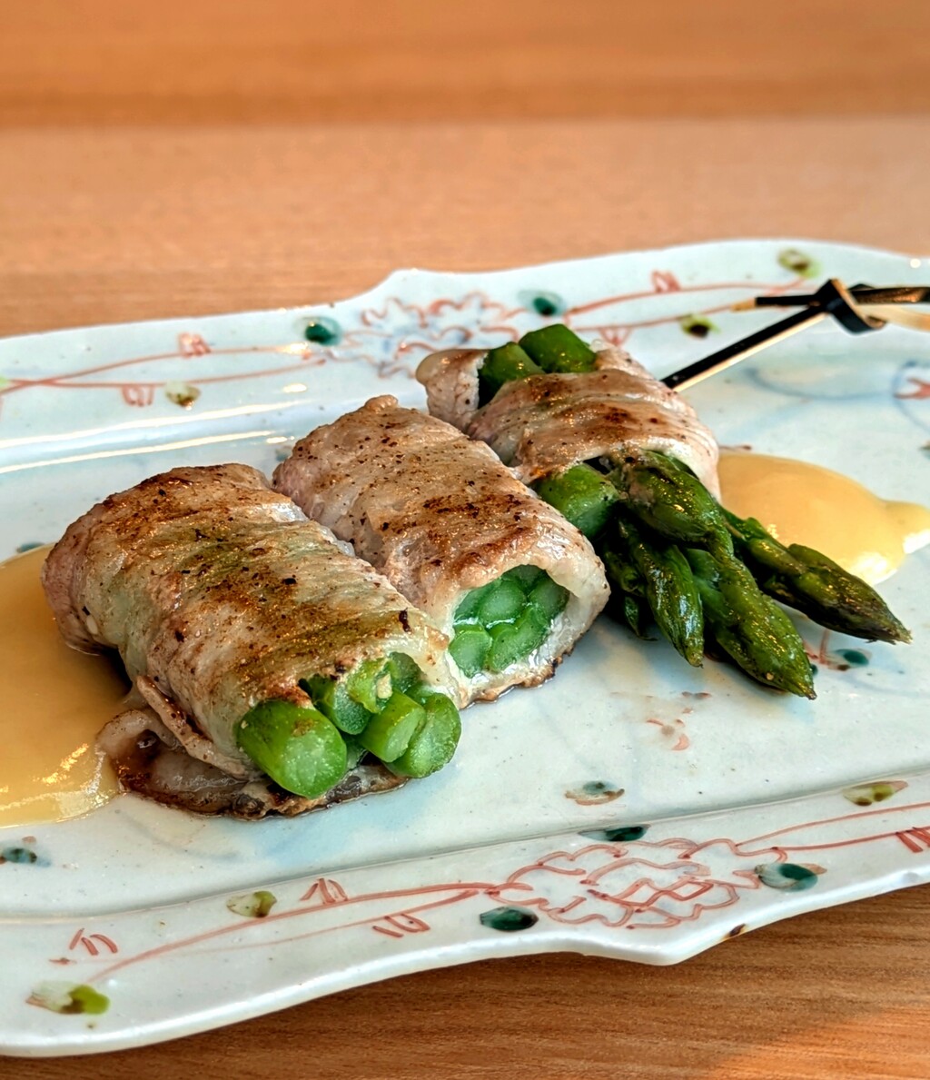 夢豚の肉汁をまとったアスパラに、讃岐の白味噌が甘くてバランスがいい逸品!