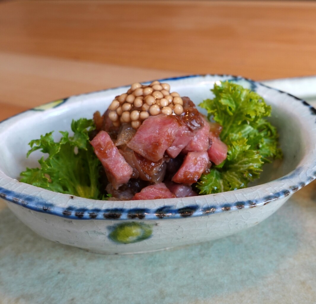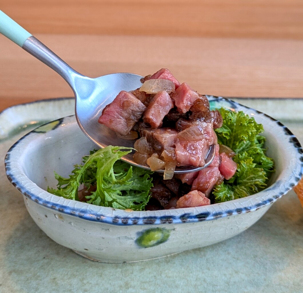 小さな器のなかにローストビーフがギッシリ入ってますよ♬