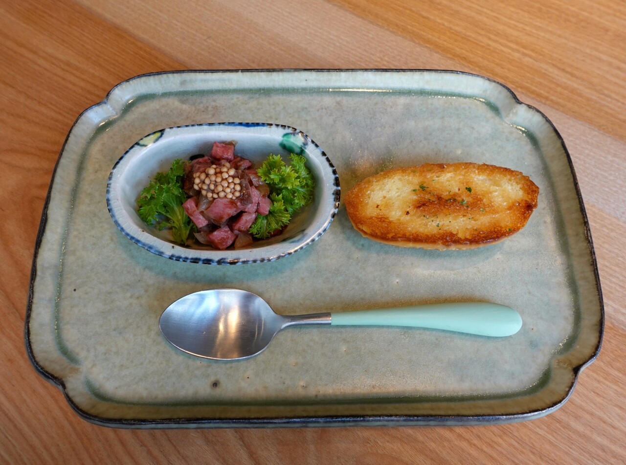 ・オリーブ牛ローストビーフタルタル ガーリックトースト