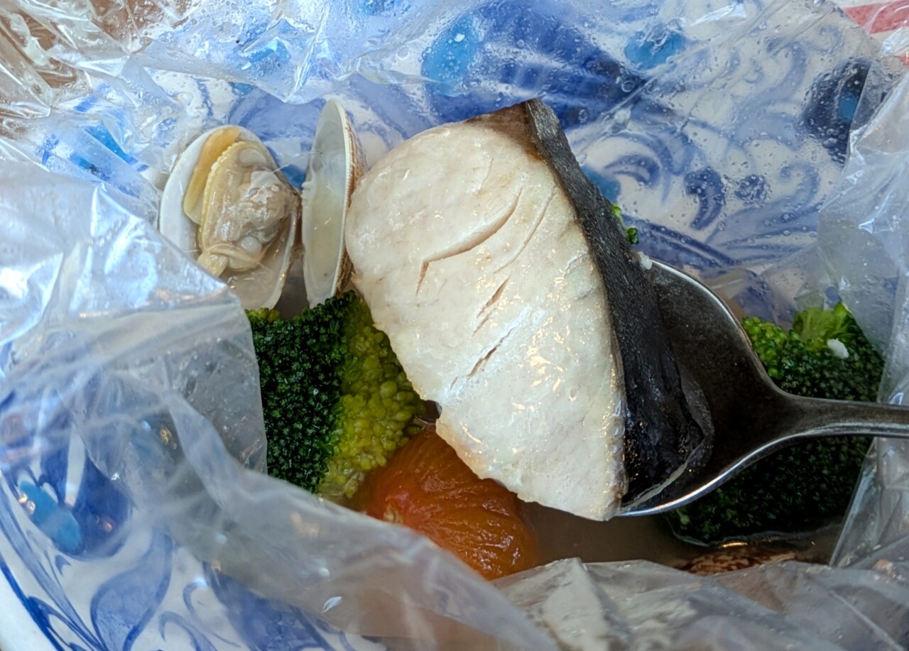 そーっと開封すると、熱々のアクアパッツァが登場☆