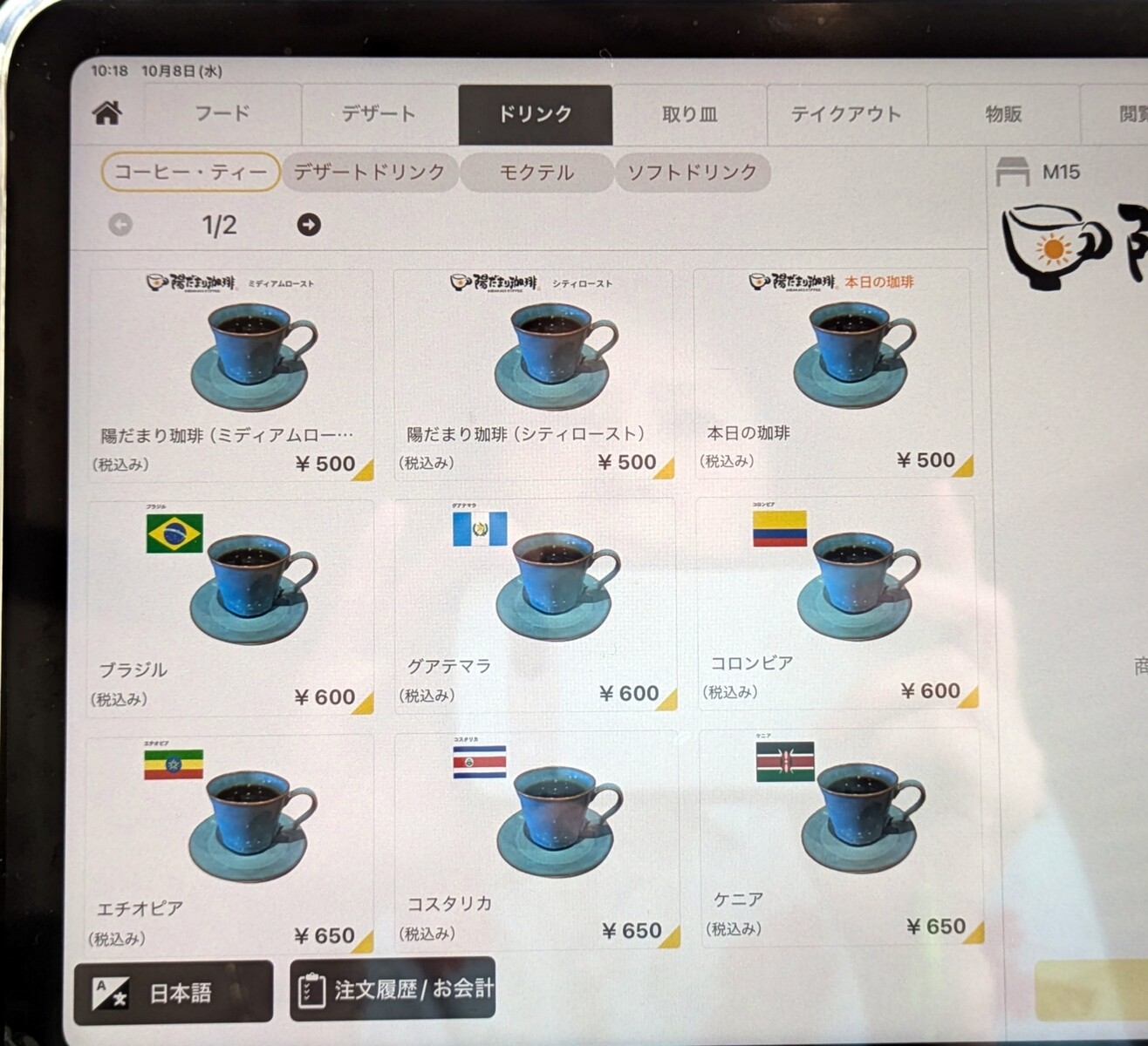 タブレット注文になってました!